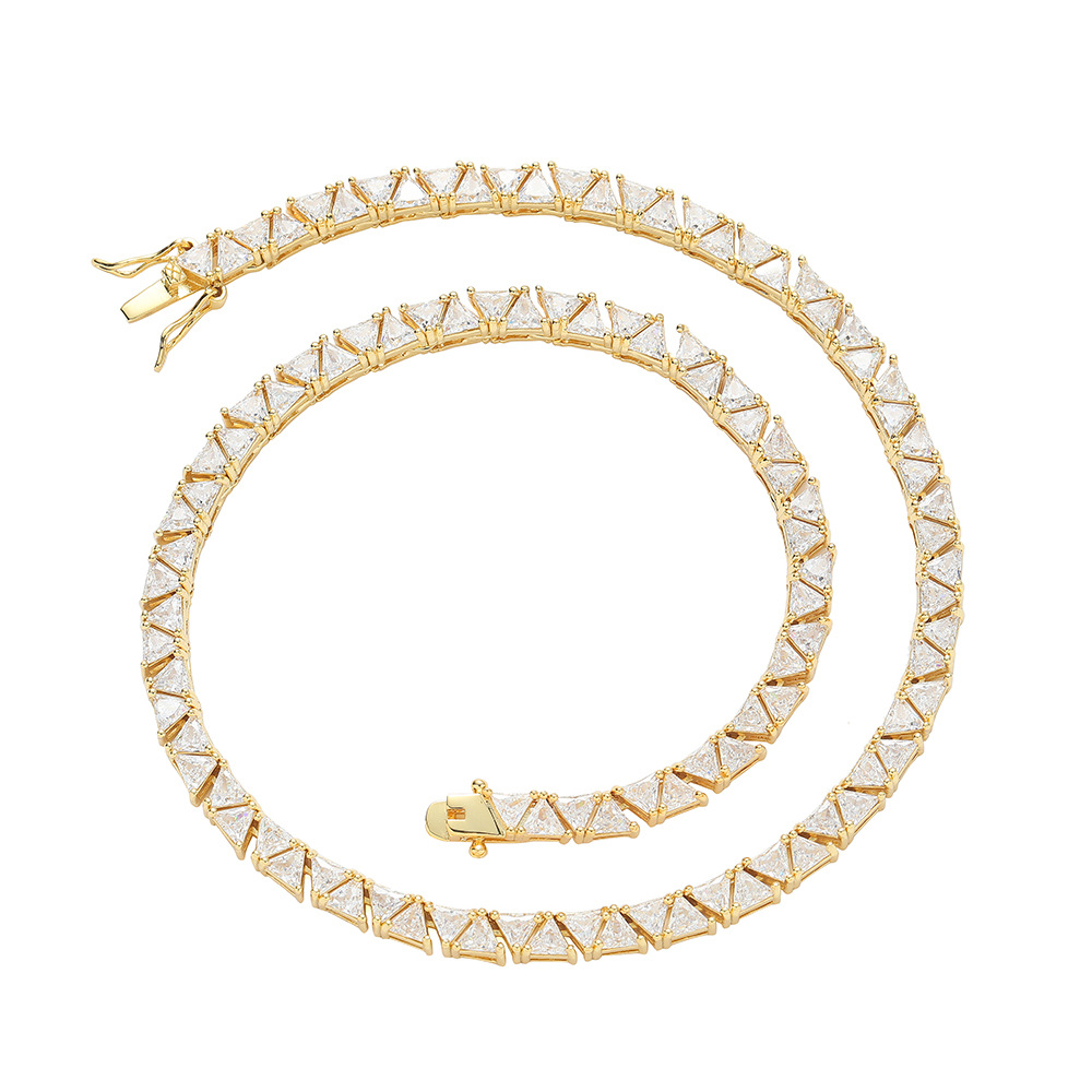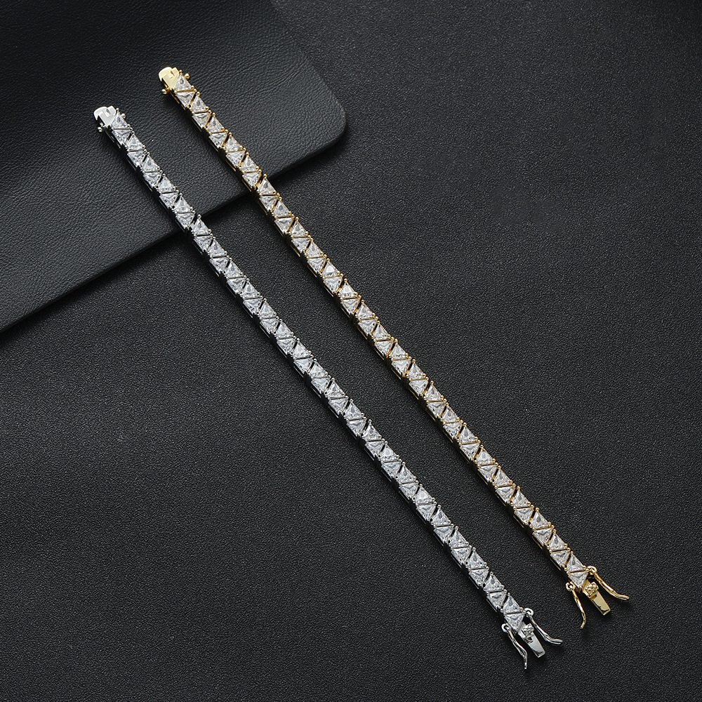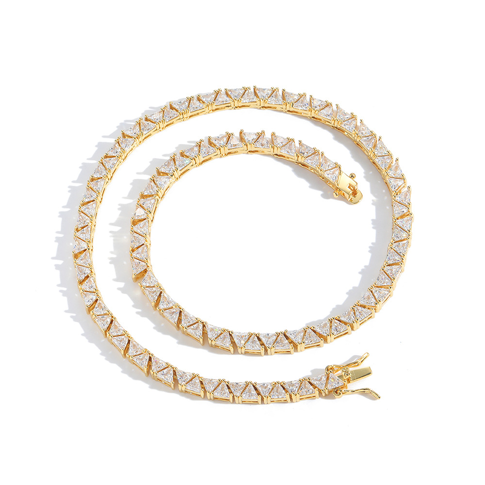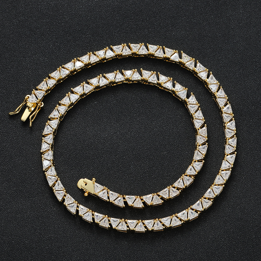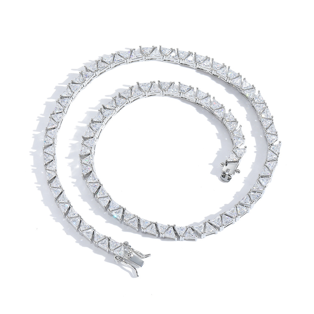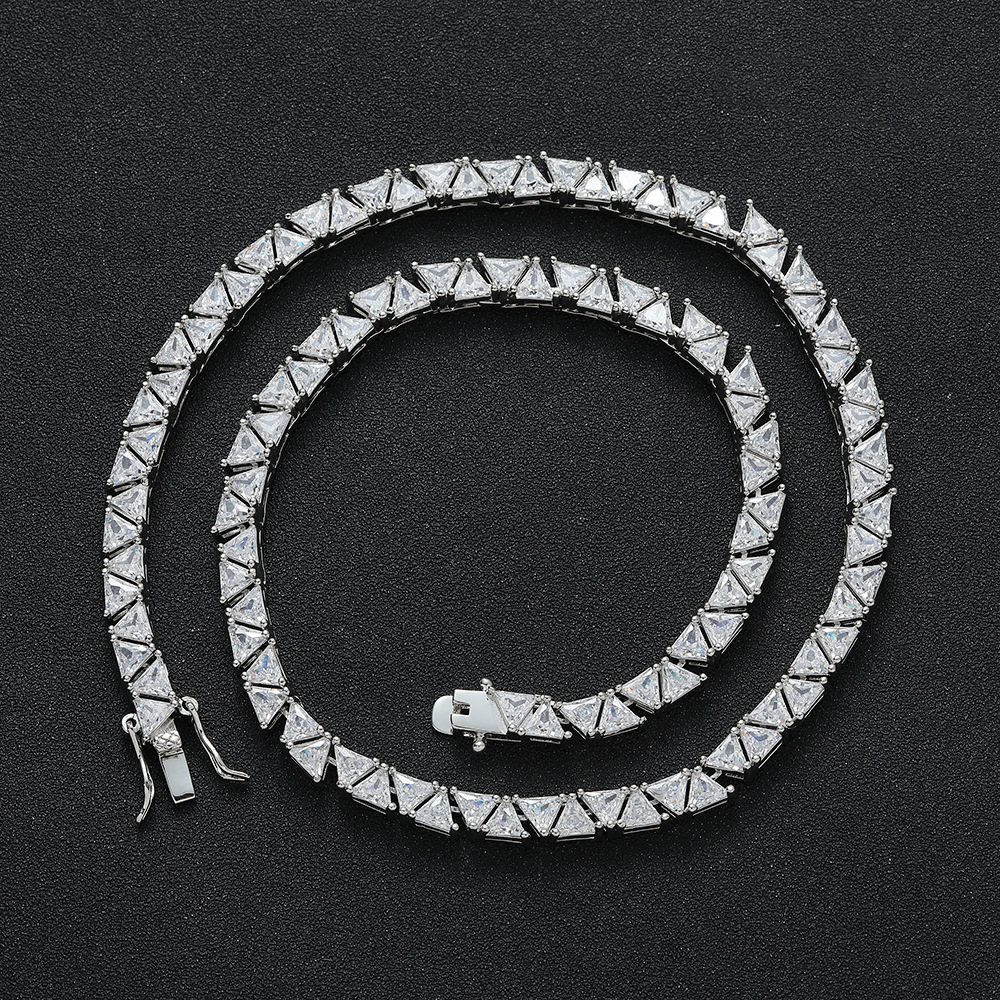 Hip Hop Copper Inlaid Zircon 3mm Front Reverse Triangle Single Row Tennis Chain Necklace Bracelet