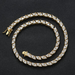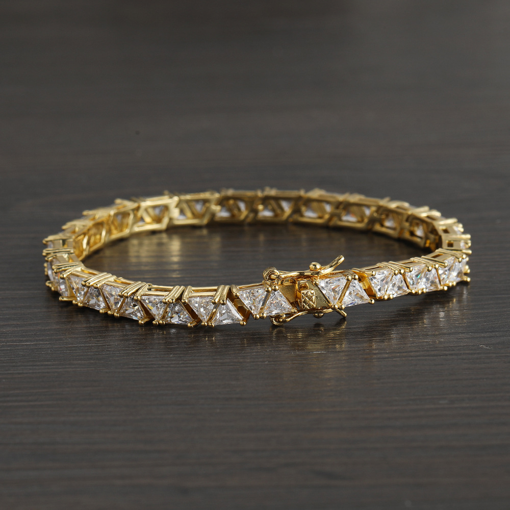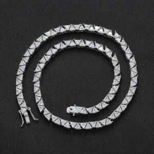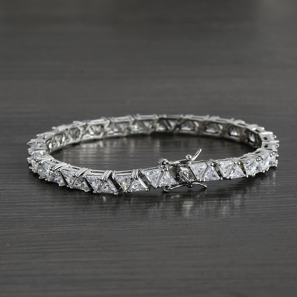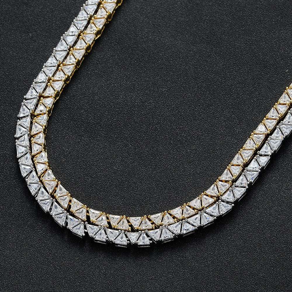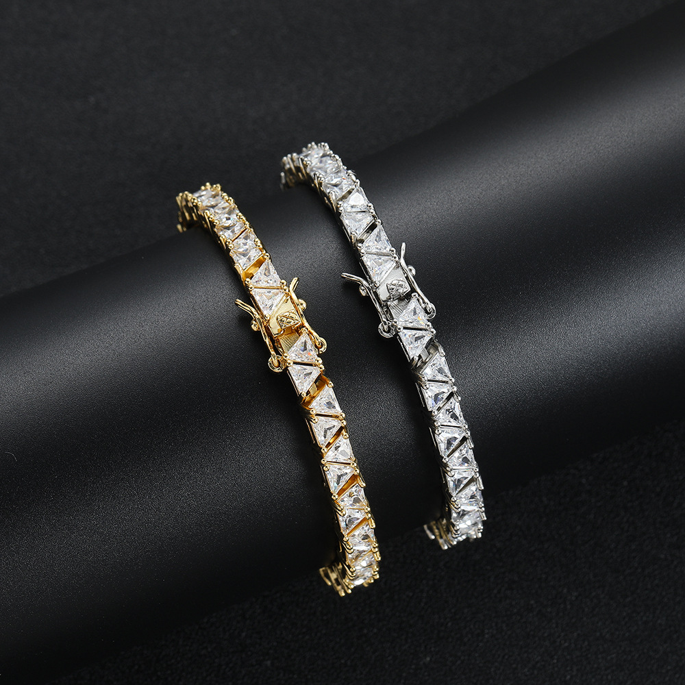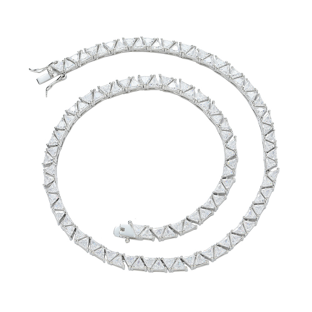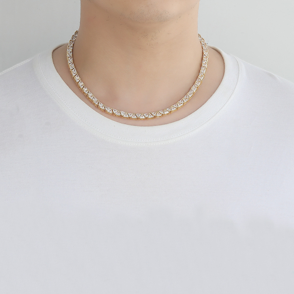 Hip Hop Copper Inlaid Zircon 3mm Front Reverse Triangle Single Row Tennis Chain Necklace Bracelet