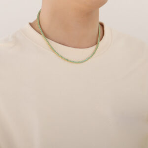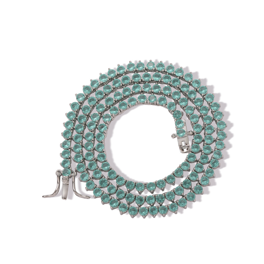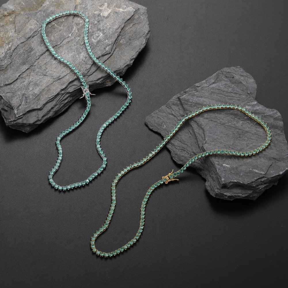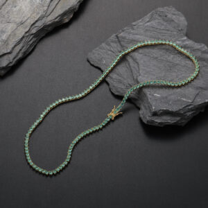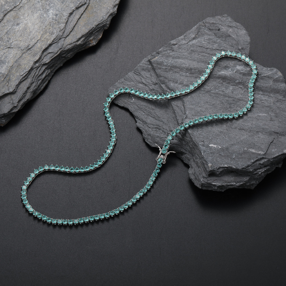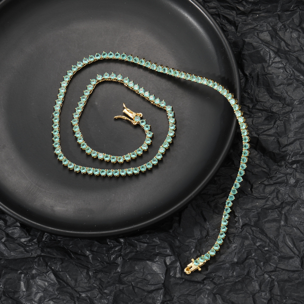 Hip Hop Copper Inlaid Zircon 3mm Green Heart Single Row Tennis Chain Necklace
