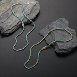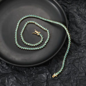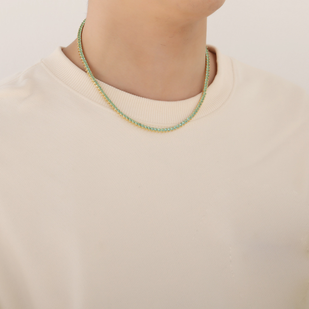 + Free ShippingHip Hop Copper Inlaid Zircon 3mm Green Heart Single Row Tennis Chain Necklace