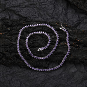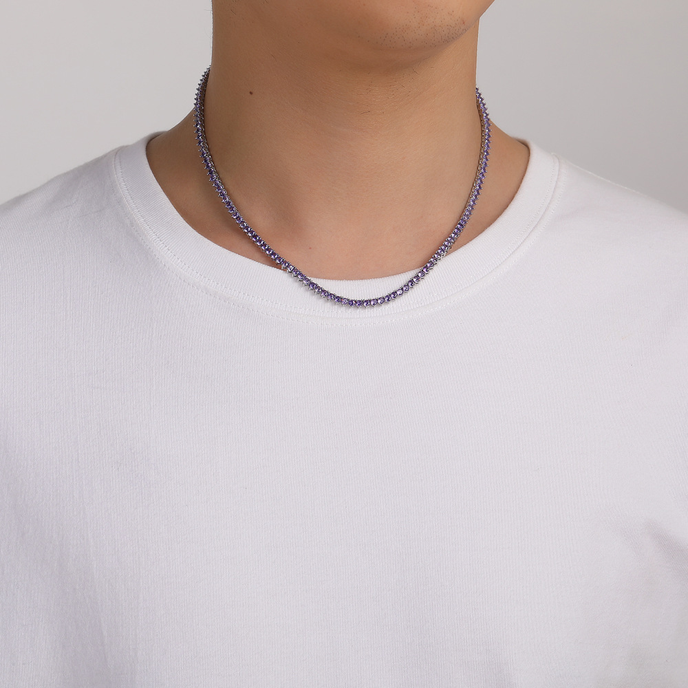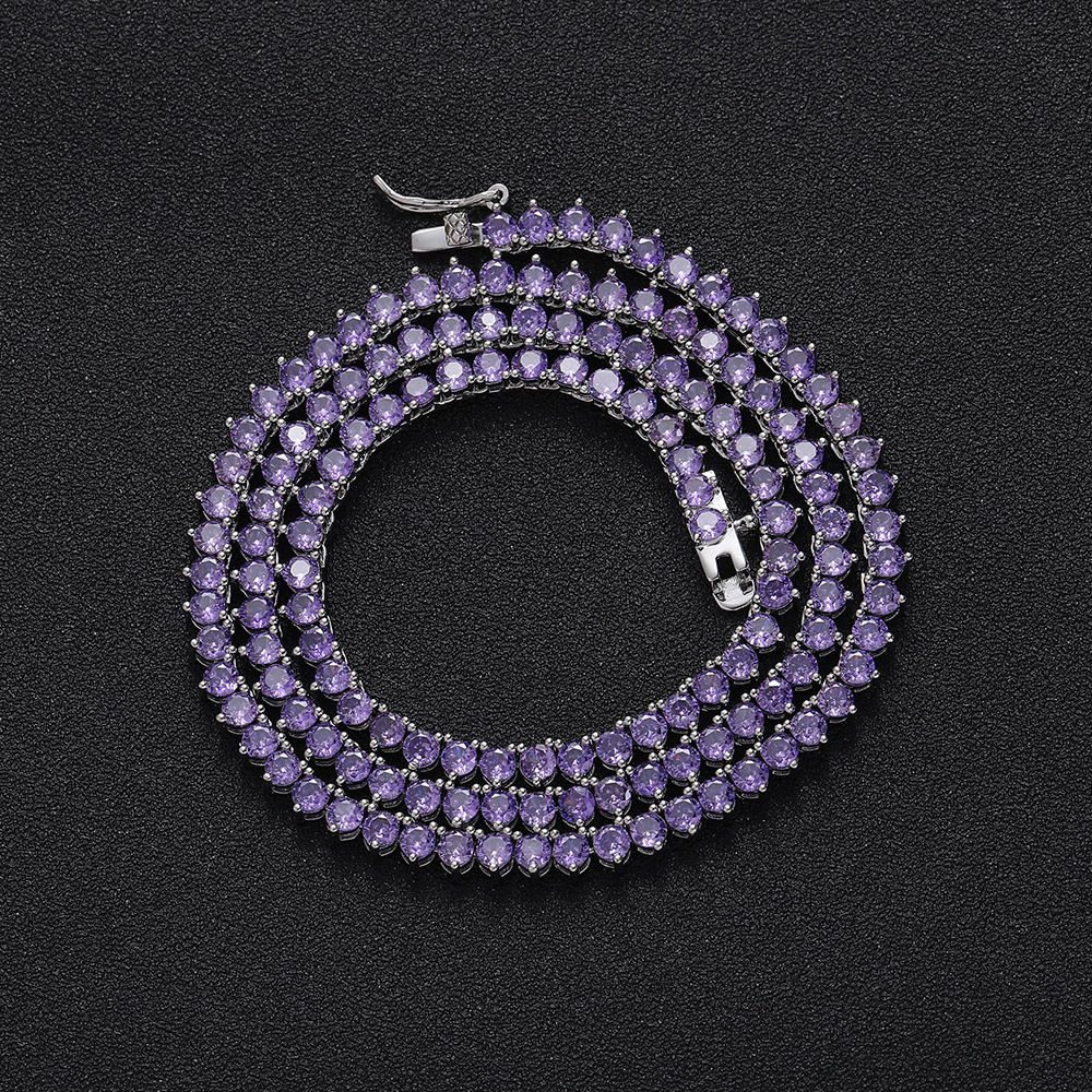Hip Hop Copper Inlaid Zircon 3mm Purple Single Row Tennis Chain Necklace