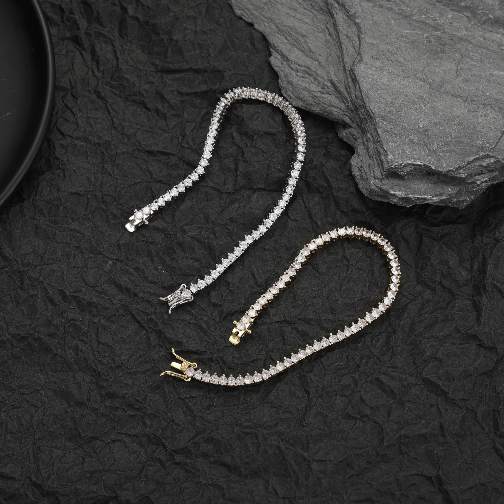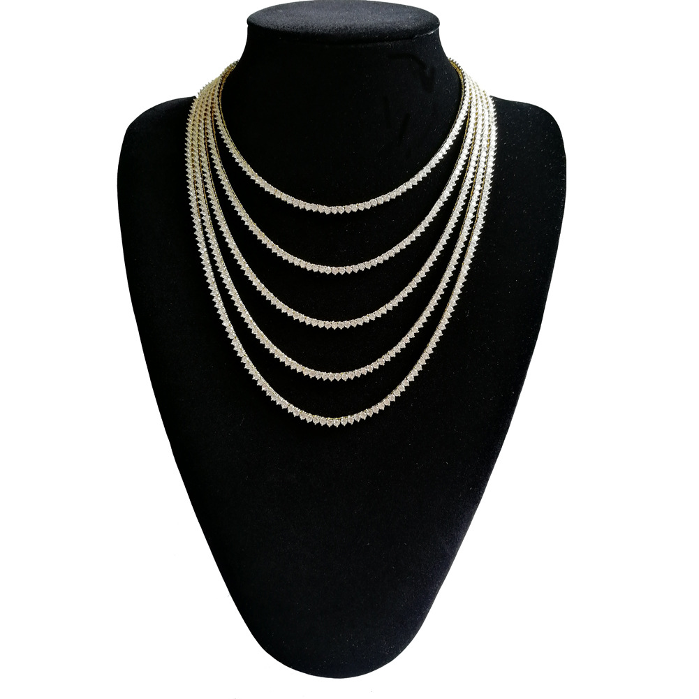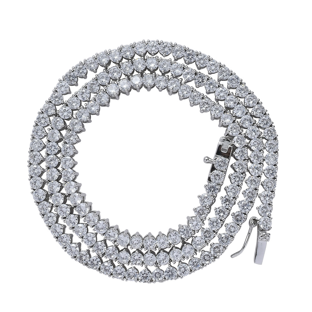 Hip Hop Copper Inlaid Zircon 3mm Single Row 3 Prong Tennis Chain Necklace