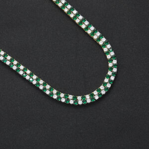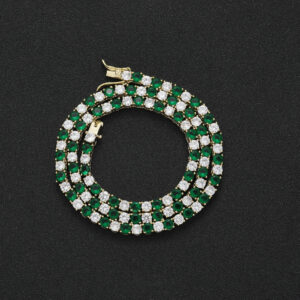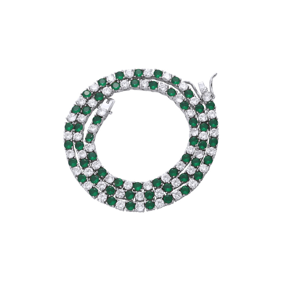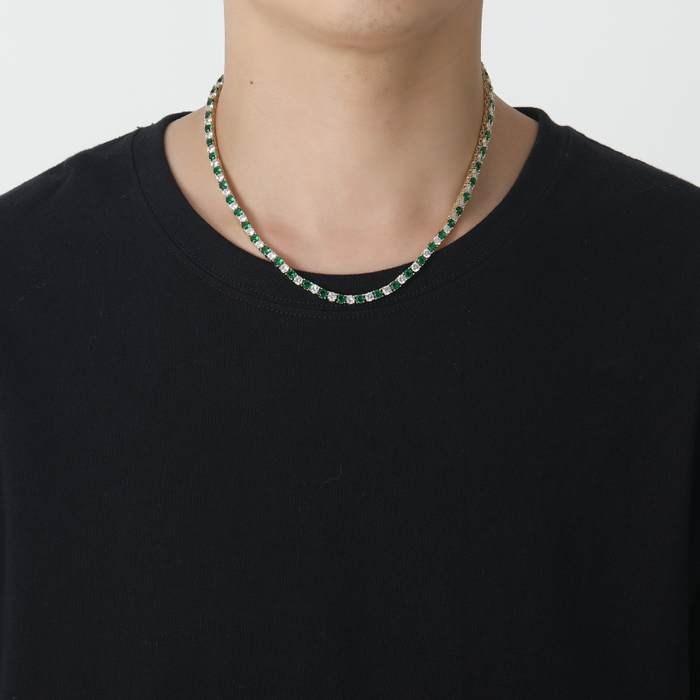 Hip Hop Copper Inlaid Zircon 4mm Green and White Single Row Tennis Chain Necklace