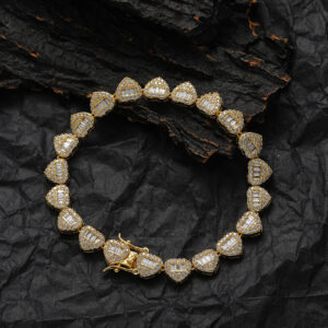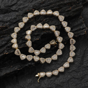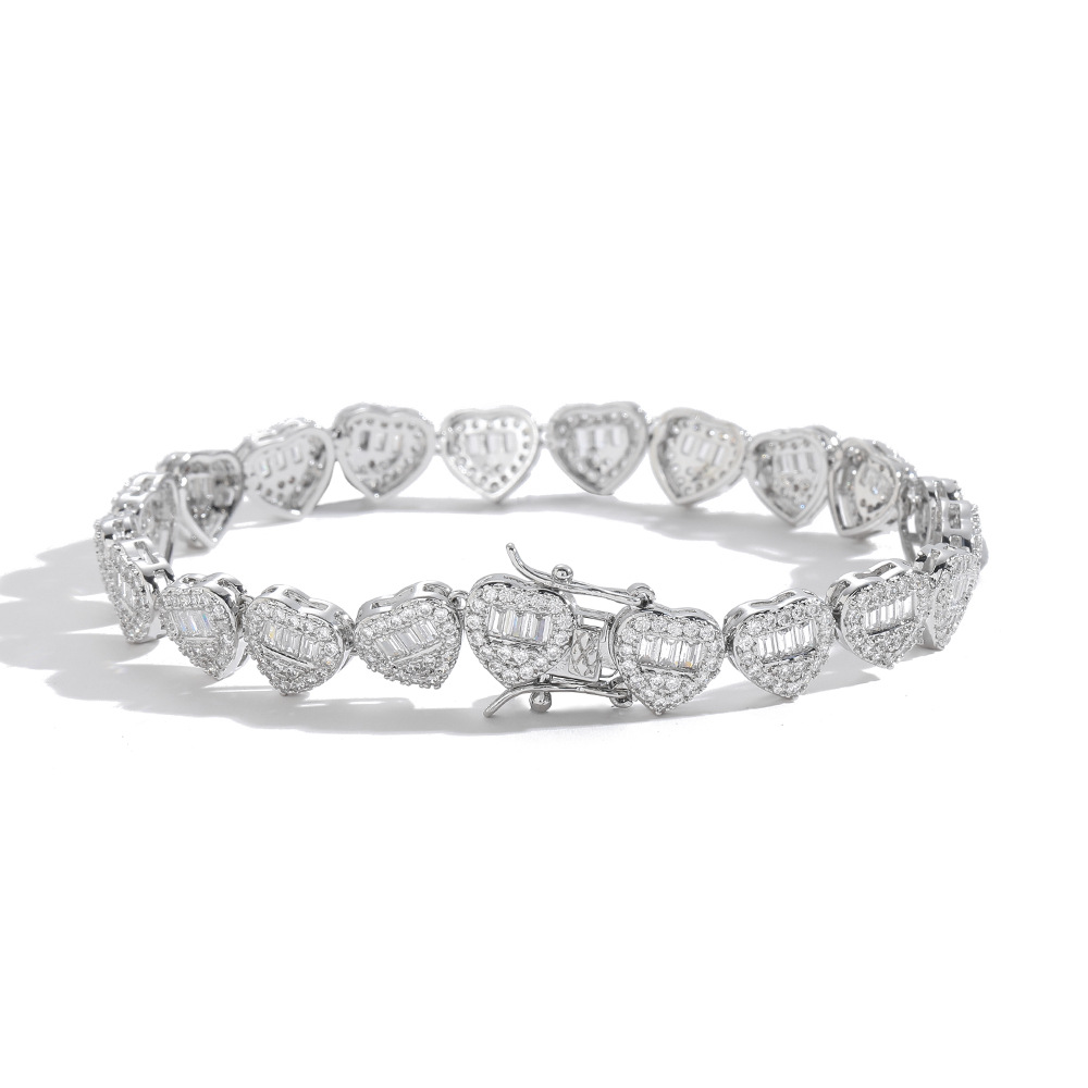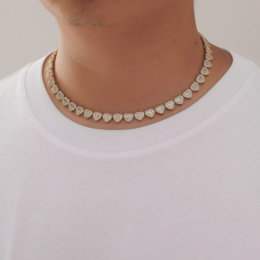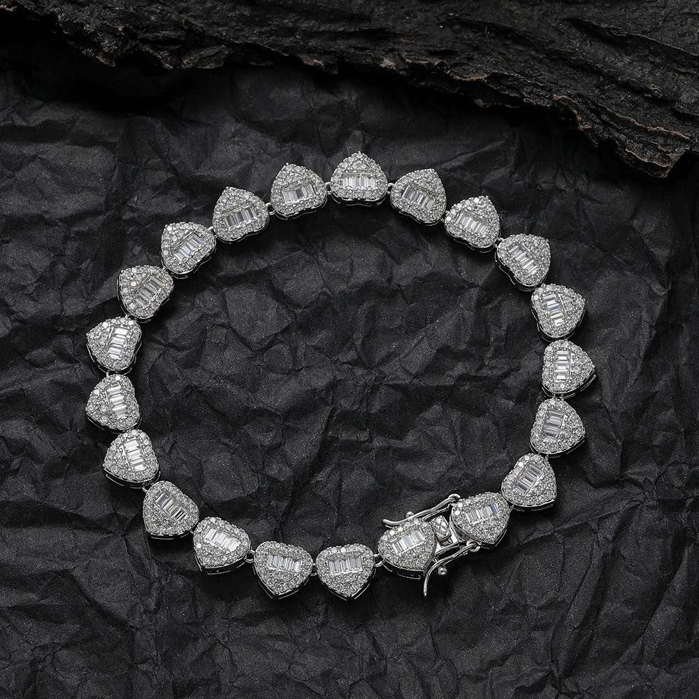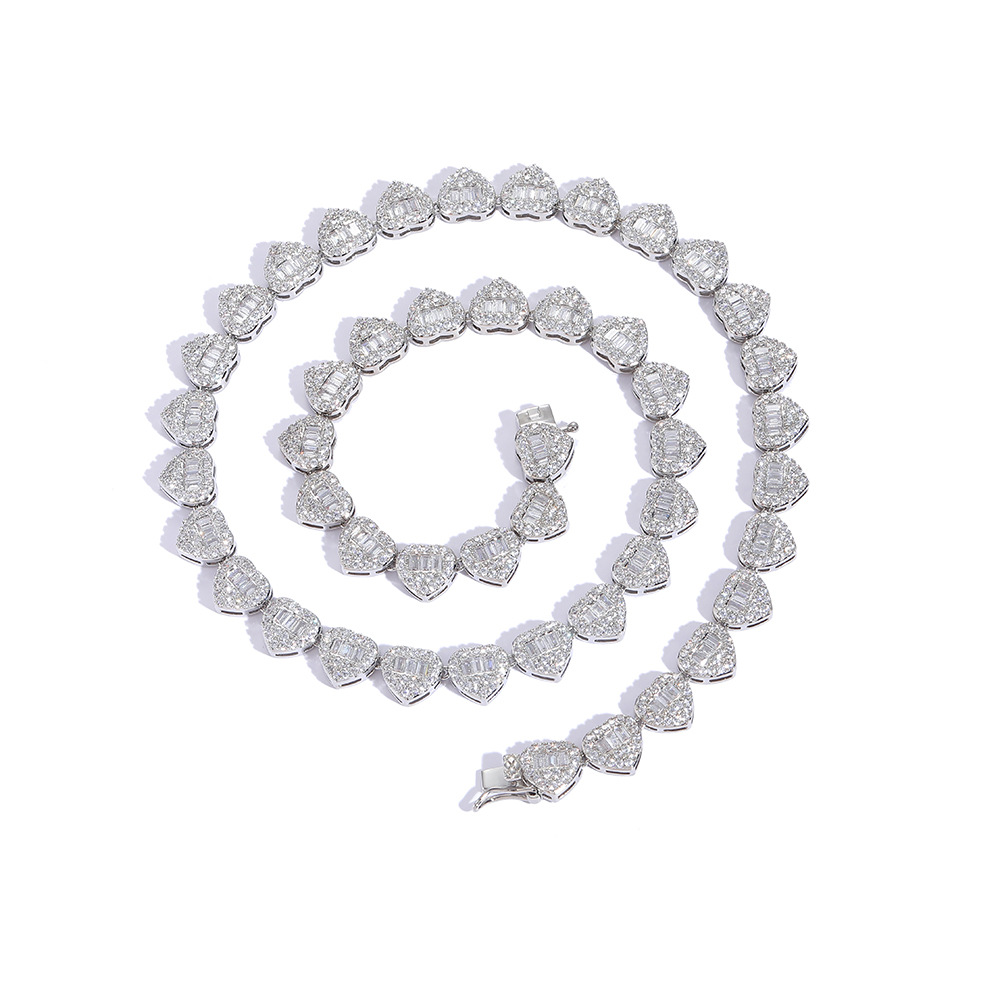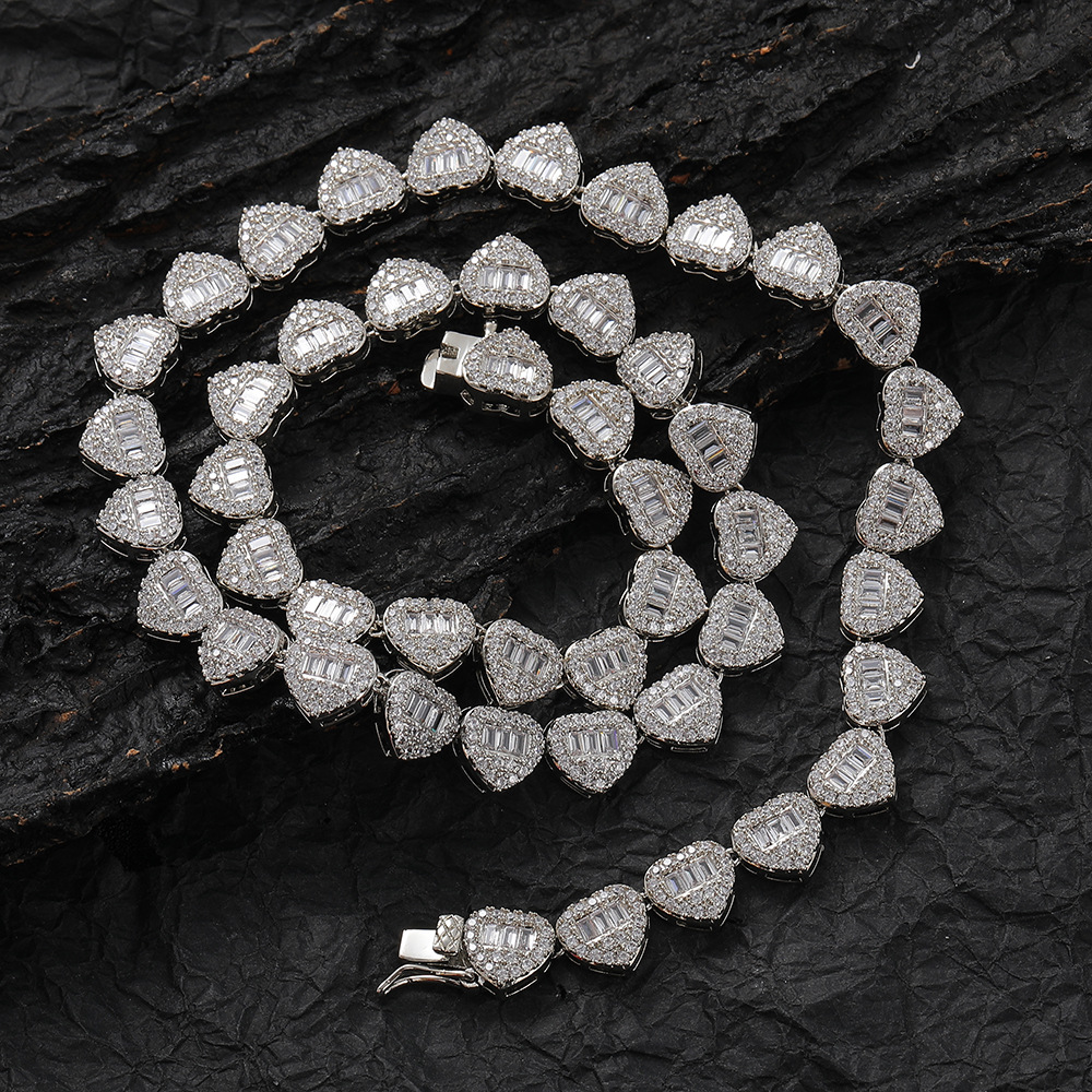 Hip Hop Copper Inlaid Zircon 8mm Heart Shaped Single Row Tennis Chain Necklace Bracelet