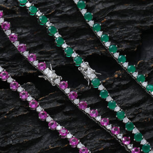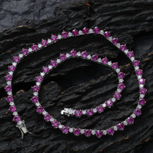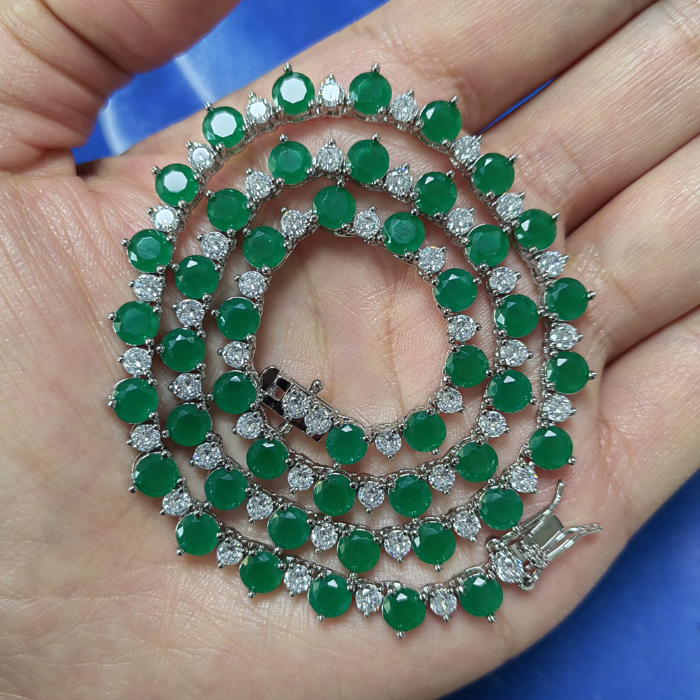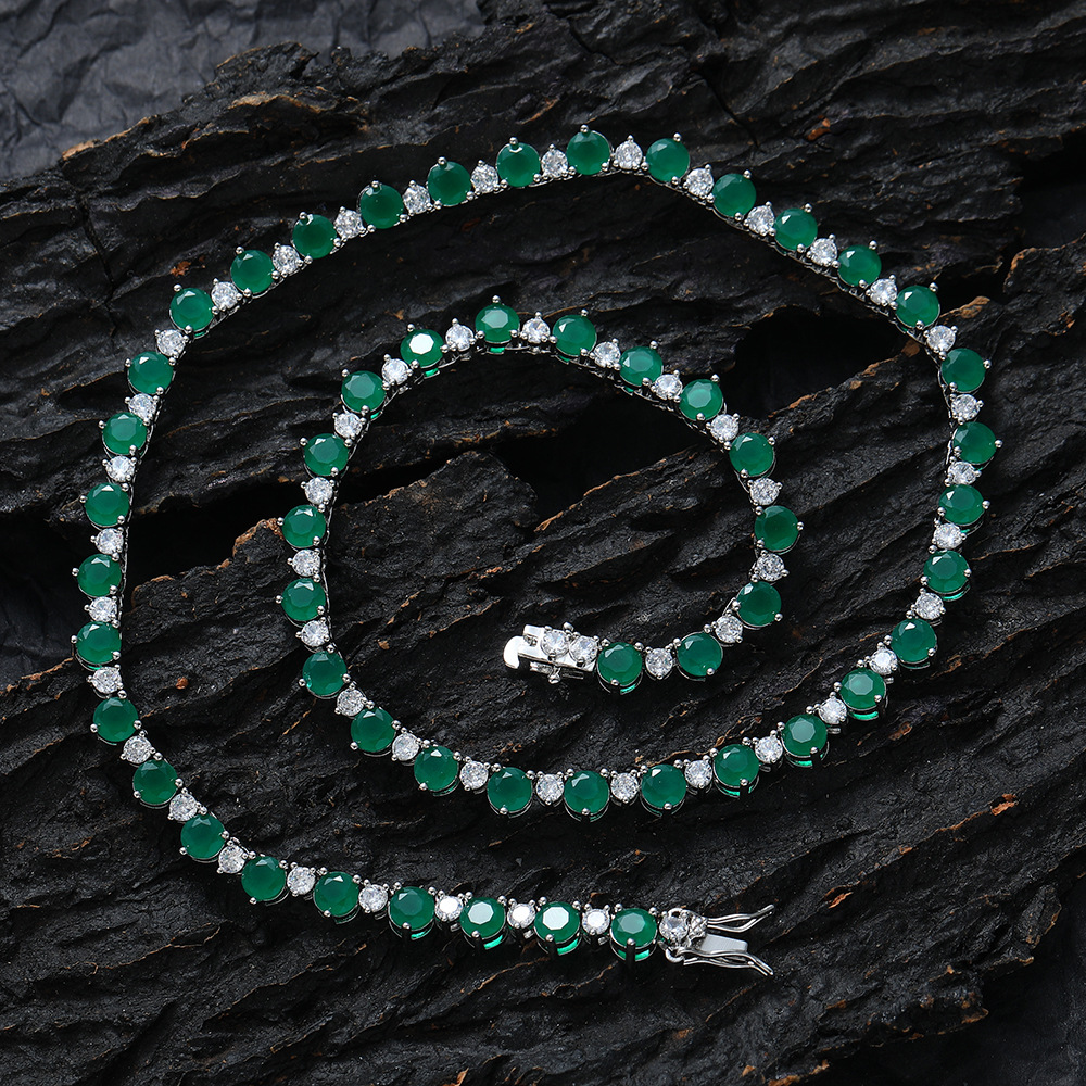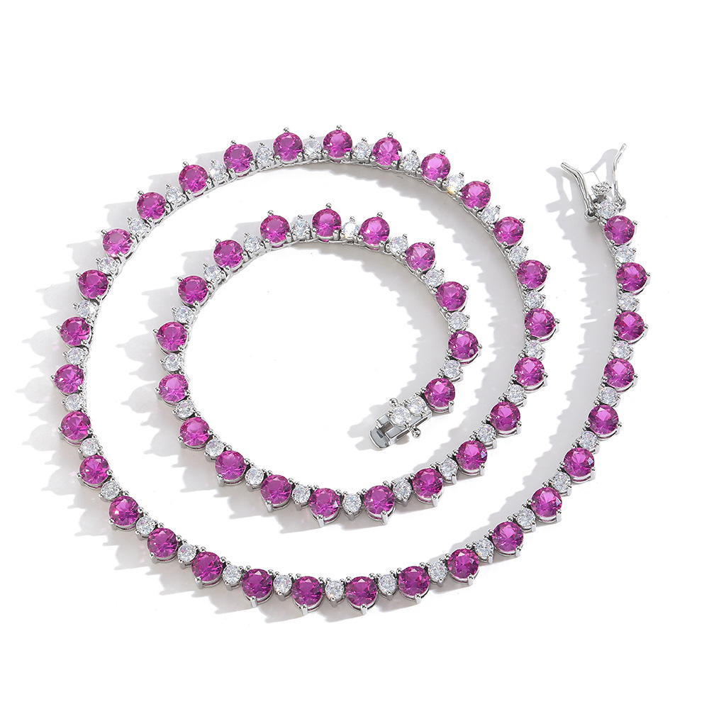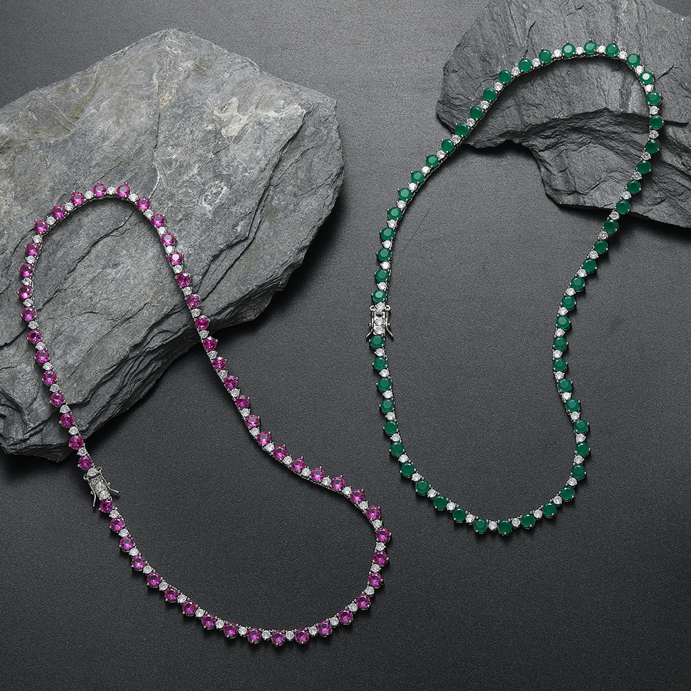 Hip Hop copper-inlaid zircon color mix single-row tennis chain necklace