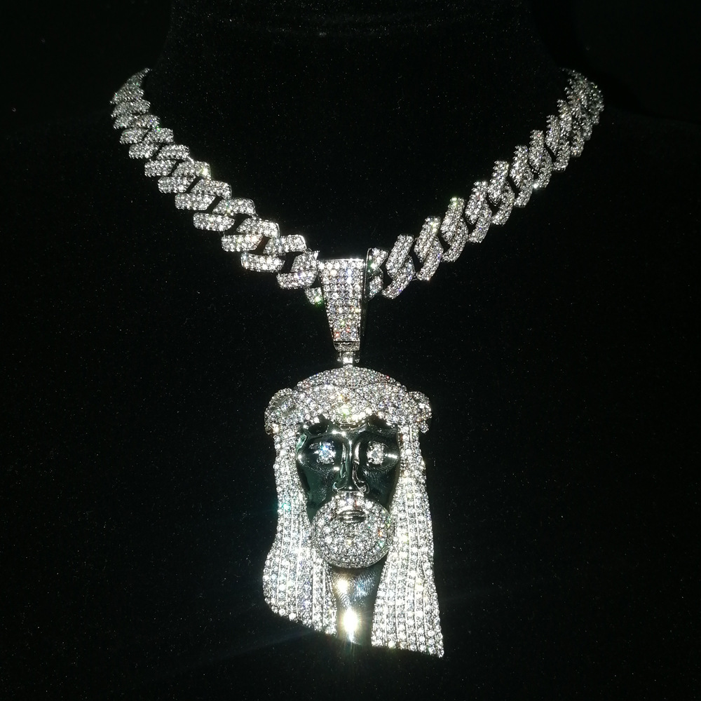 Hip Hop copper inlaid zircon cuba necklace large size avatar shape pendant box diamond chain