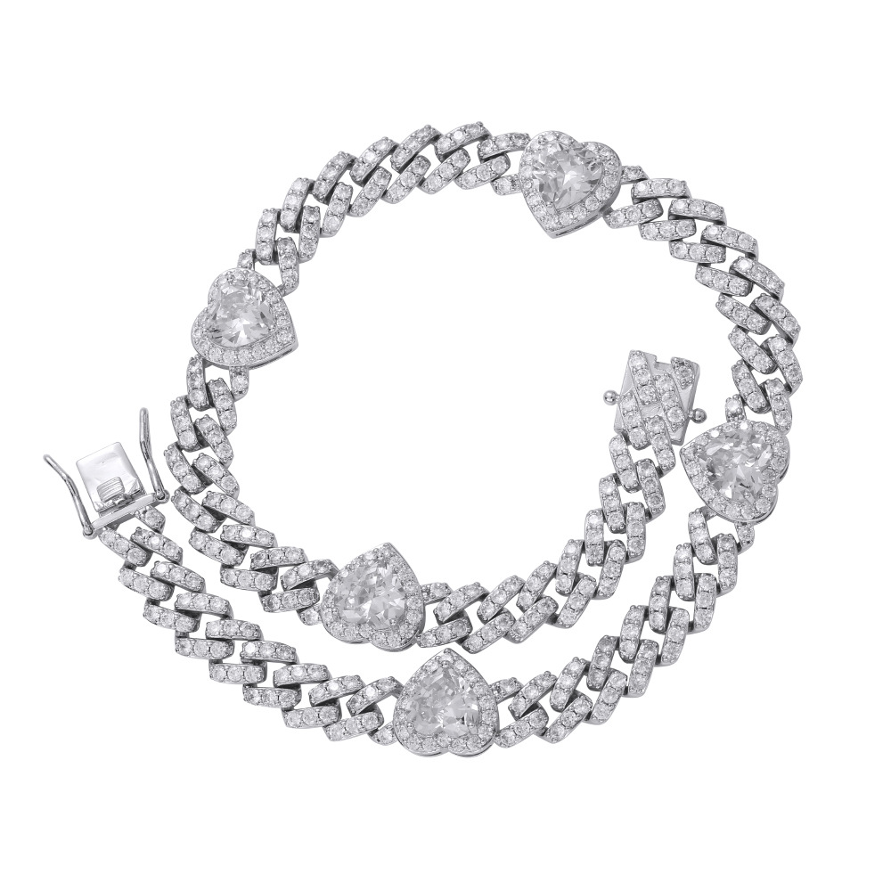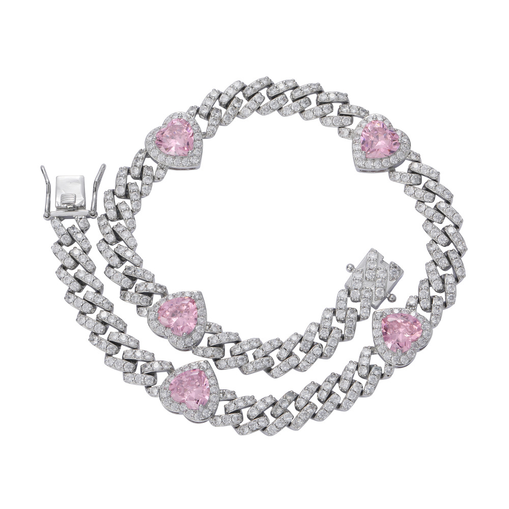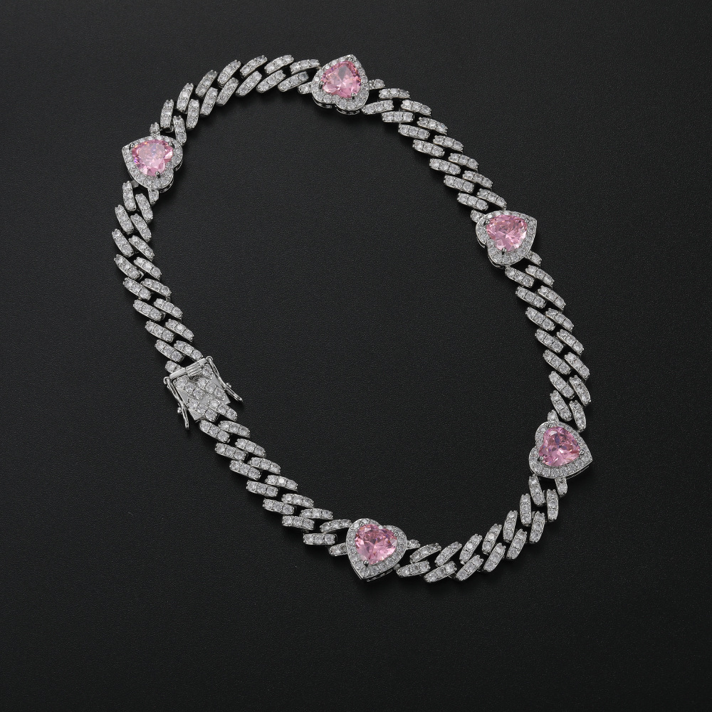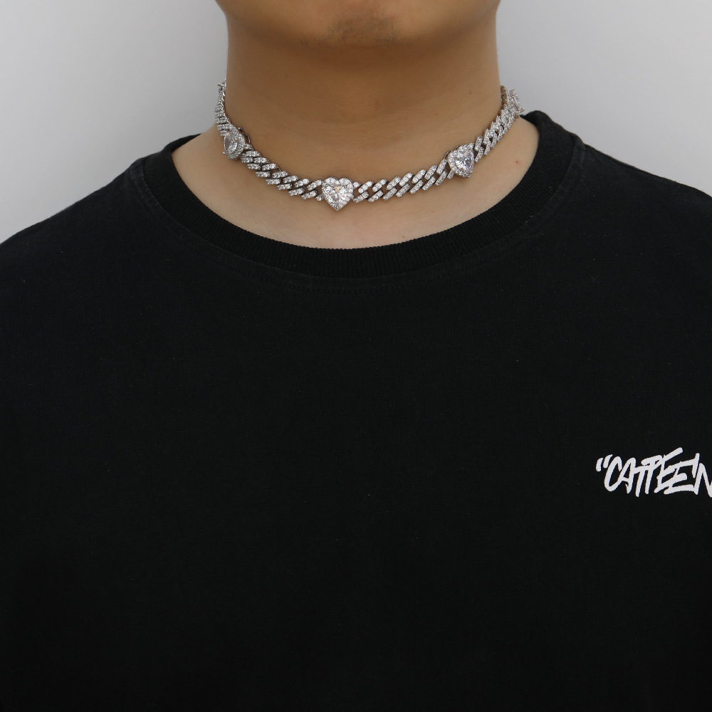 Hip Hop Copper Inlaid Zircon Cuban Necklace 10mm Chain with 3 Heart Zircon