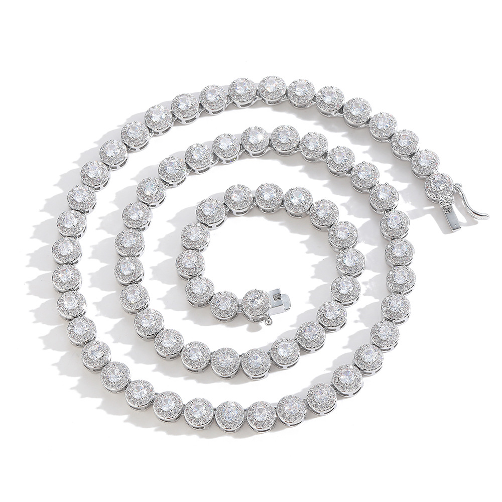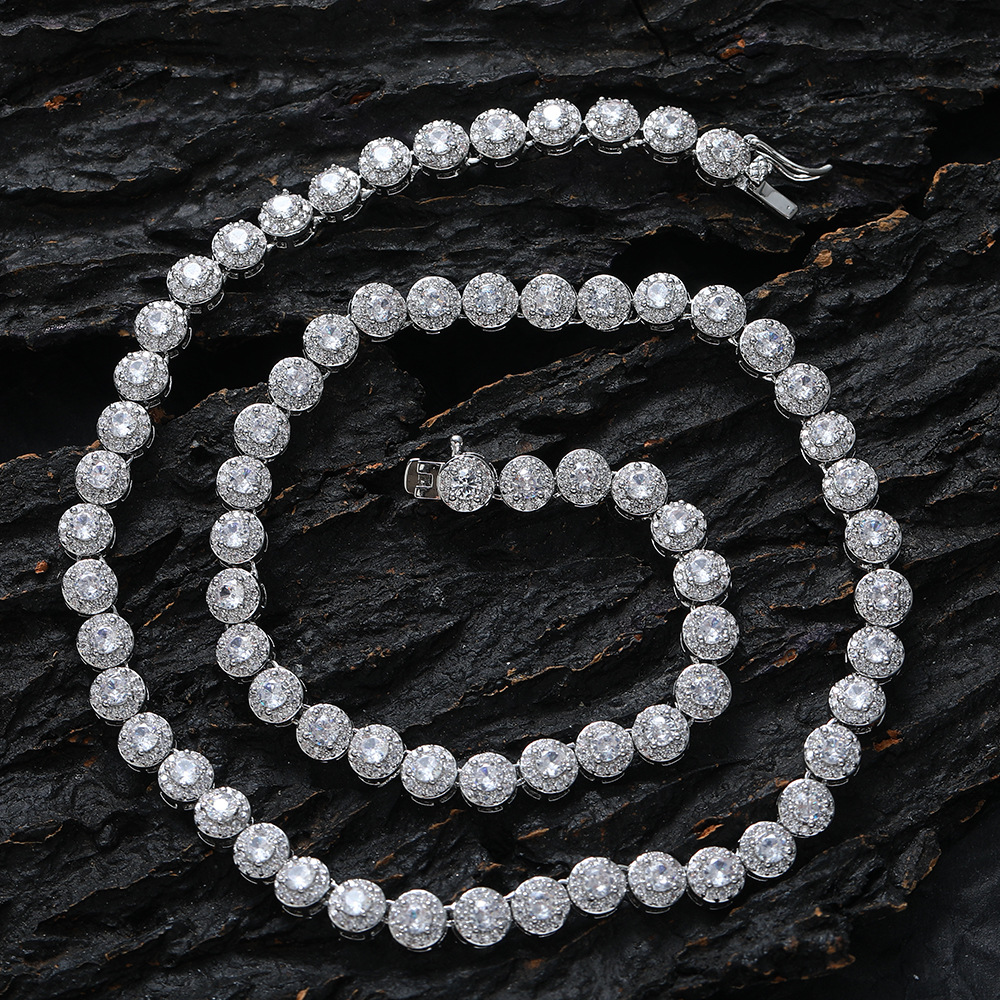Hip Hop Copper Inlaid Zircon Cuban Necklace 6mm Chain Round Zircon