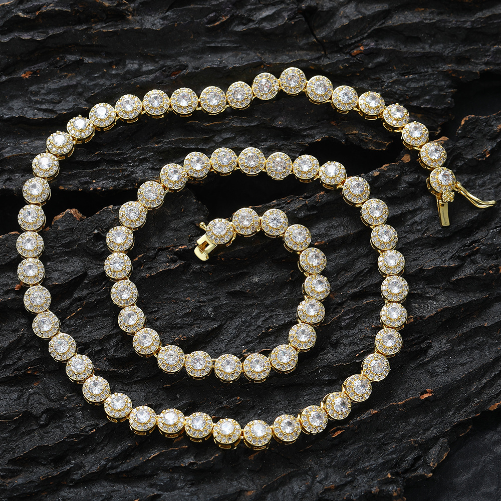 LXXL4009 Hip Hop copper inlaid round zircon rose gold single row tennis chain necklace bracelet
