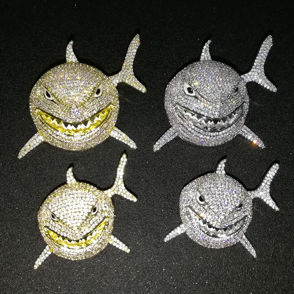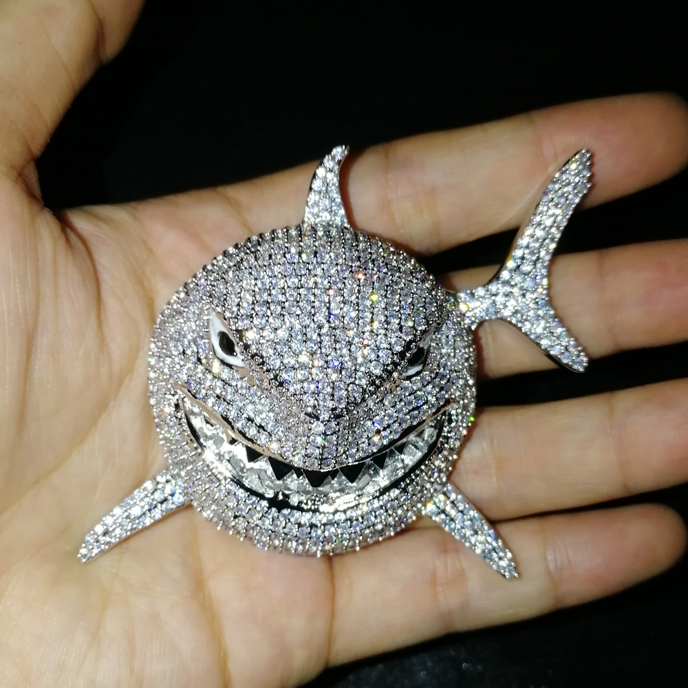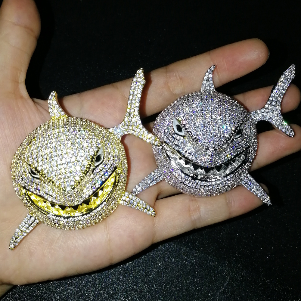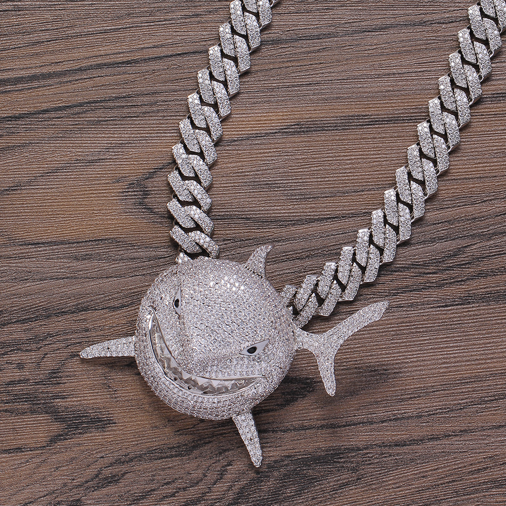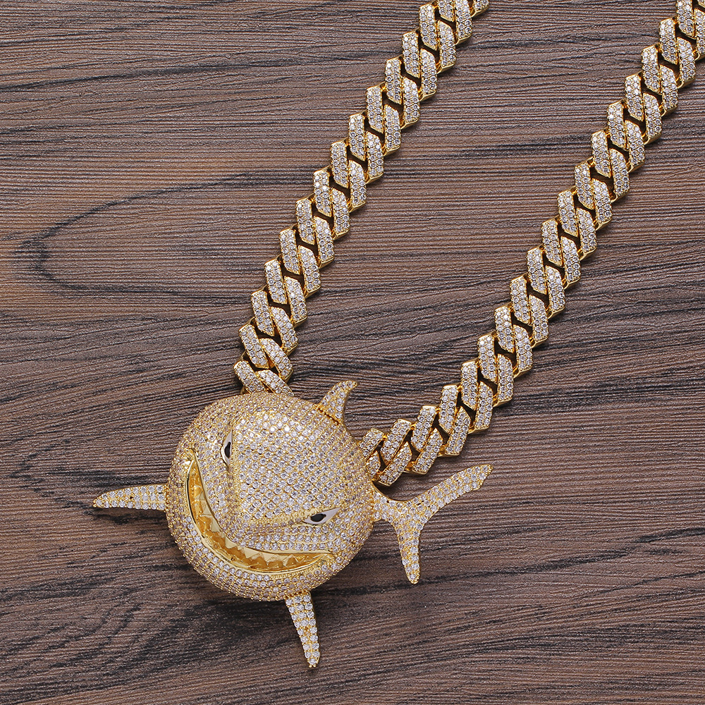 Hip Hop copper inlaid zircon Cuban necklace shark shape pendant diamond Cuban chain