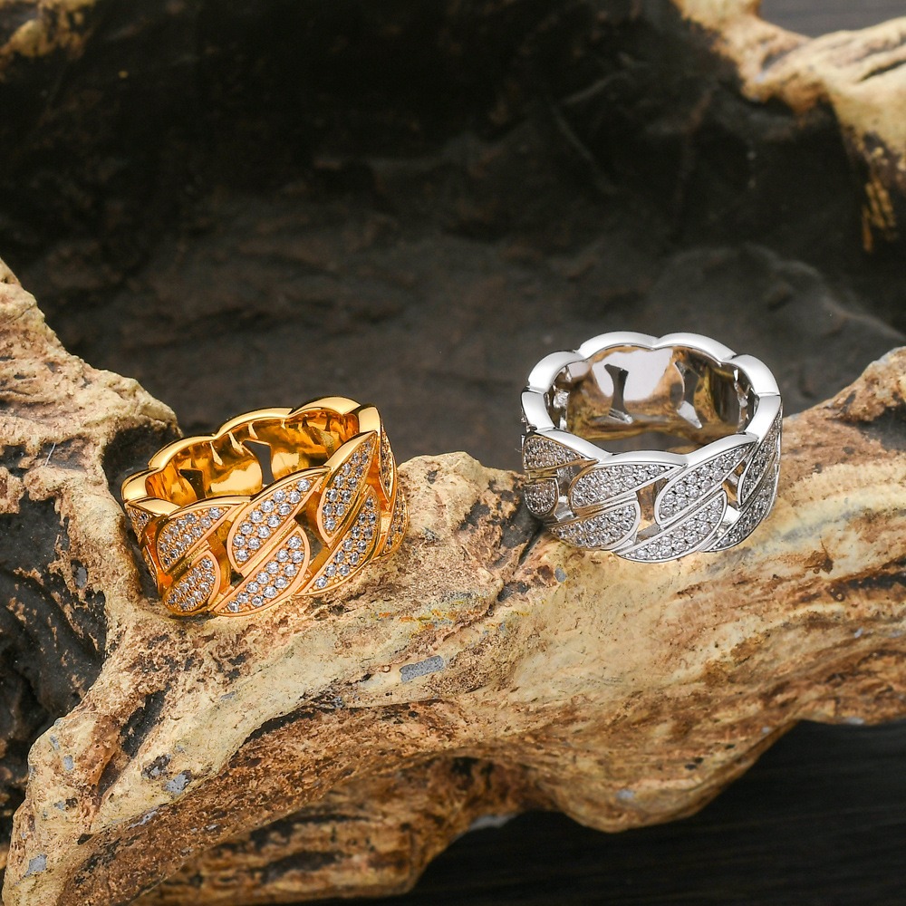 Hip Hop Copper Inlaid Zircon Cuban Ring 10mm Couple Ring
