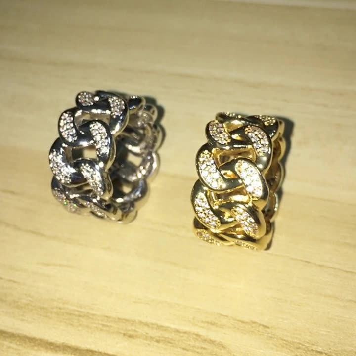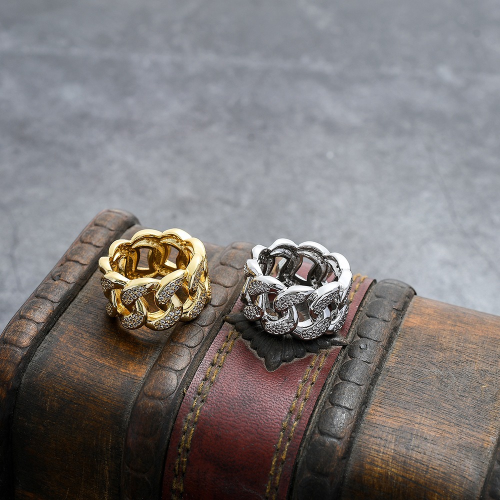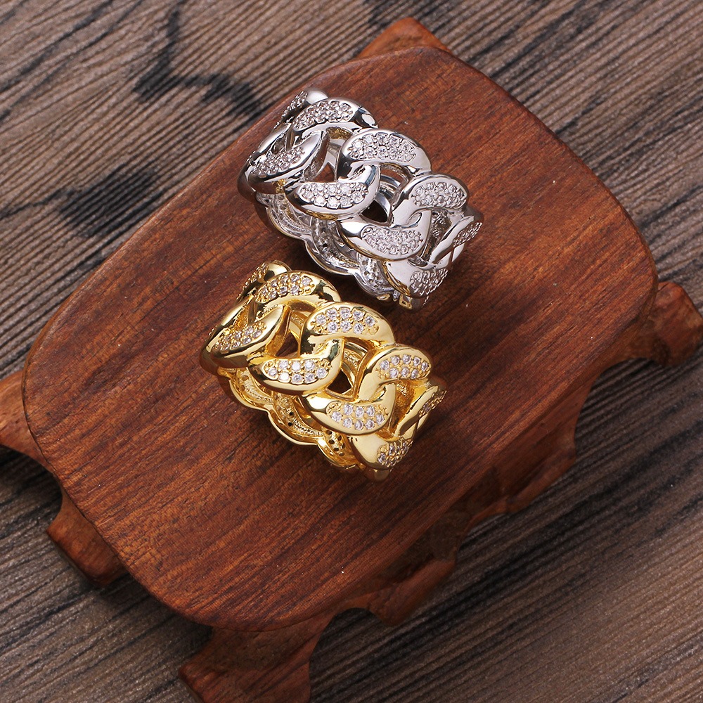 Hip Hop Copper Inlaid Zircon Cuban Ring 13mm Men’s Ring