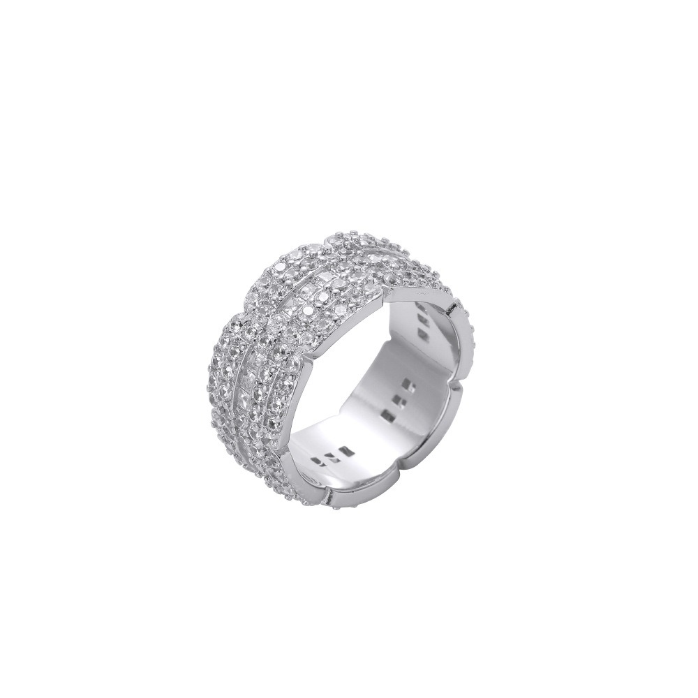 Hip Hop Copper Inlaid Zircon Cuban Ring 5 Layers Square Circle Men’s Ring