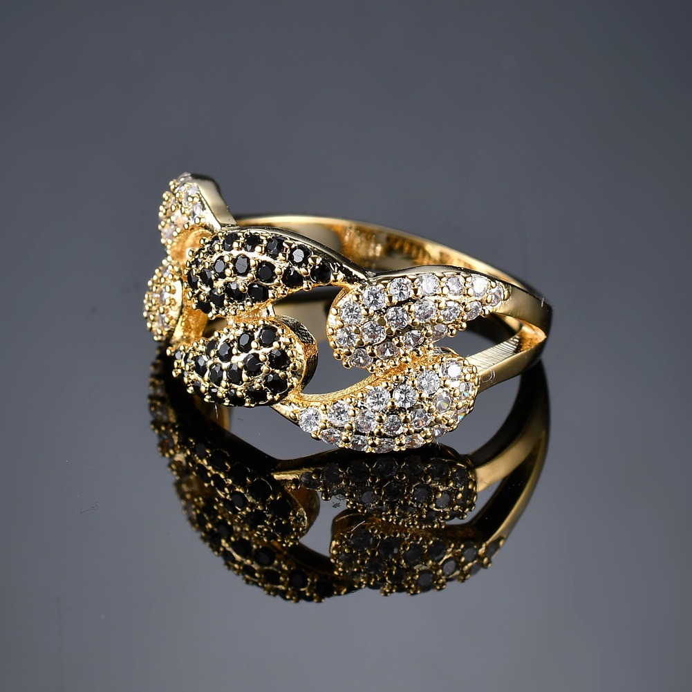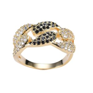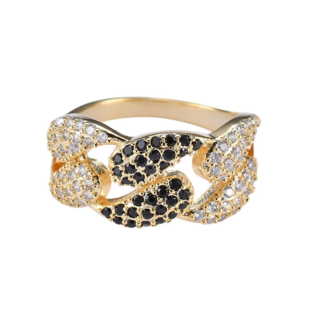 Hip Hop Copper Inlaid Zircon Cuban Ring Black & White 3 Row Zircon Men’s Ring