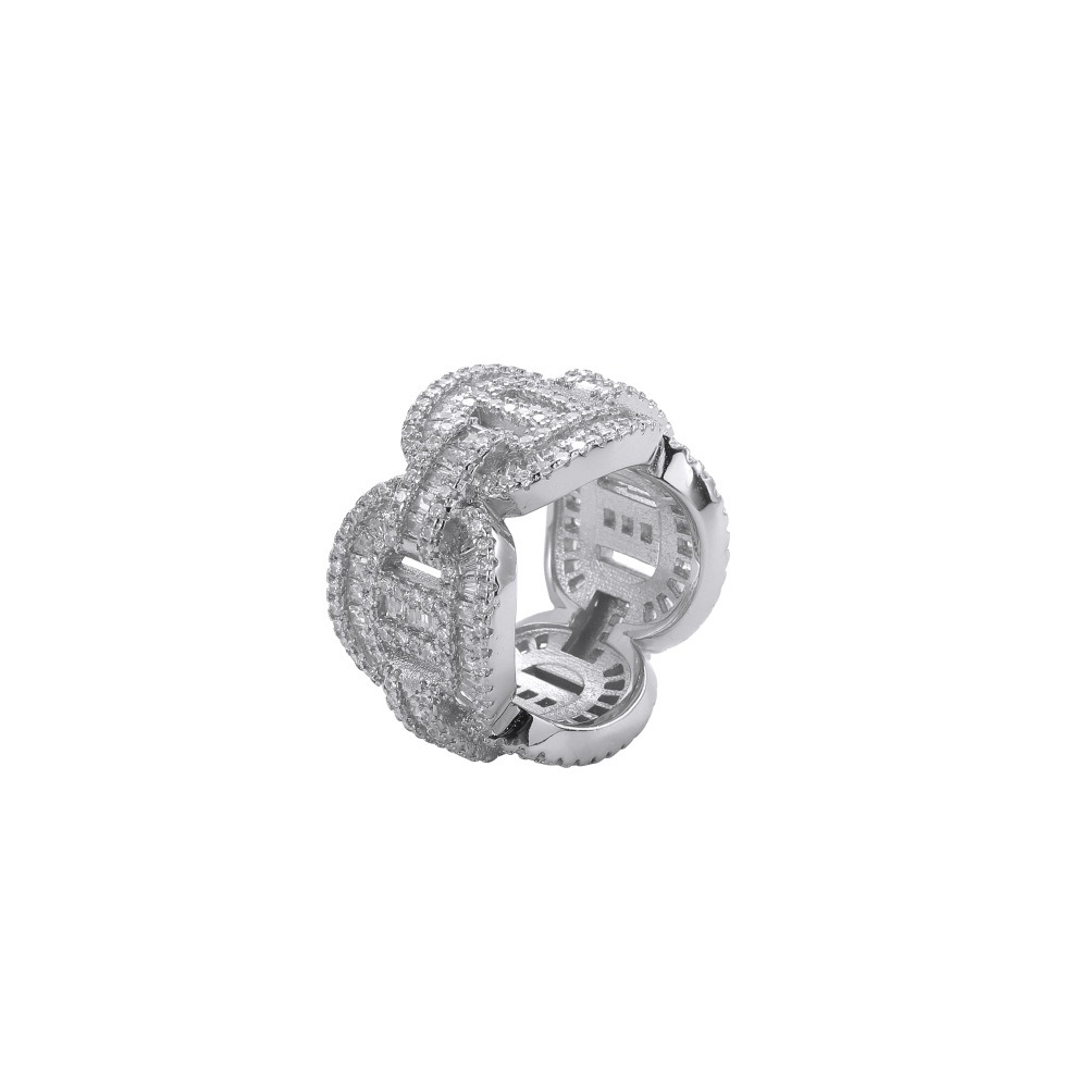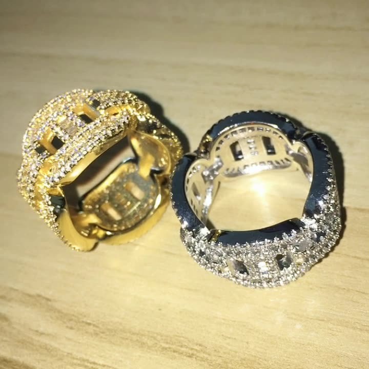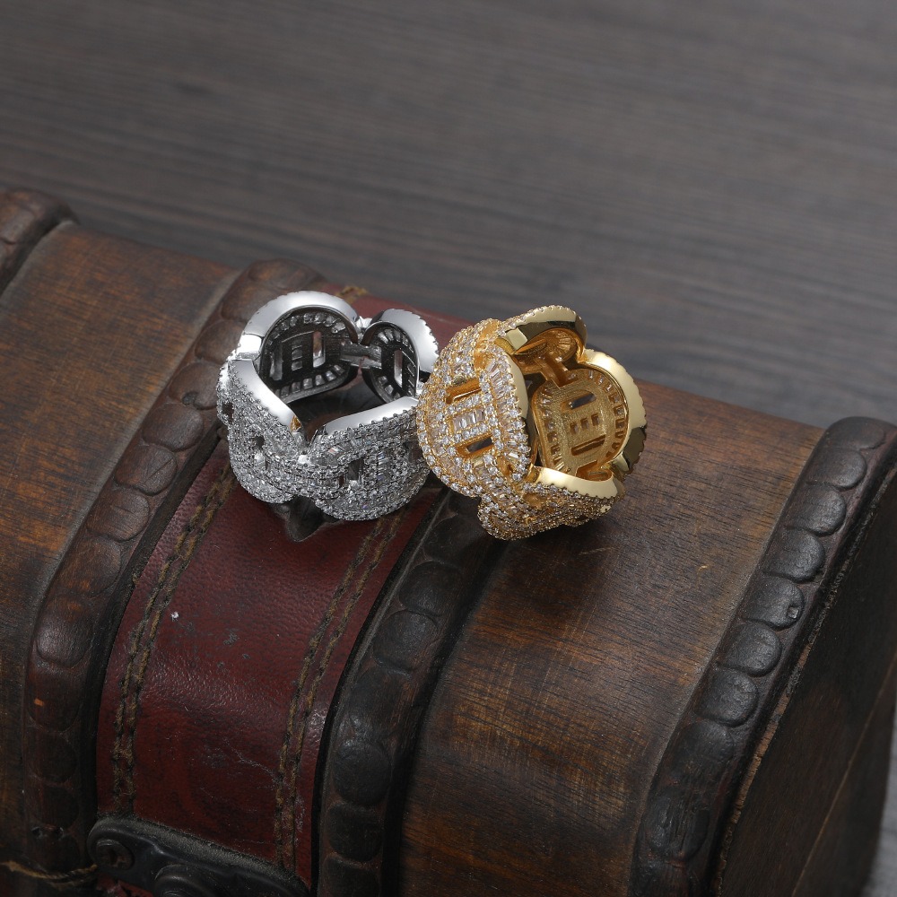 Hip Hop copper inlaid zircon Cuban ring T-shaped men’s ring