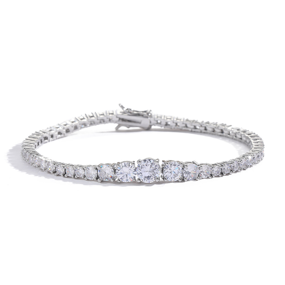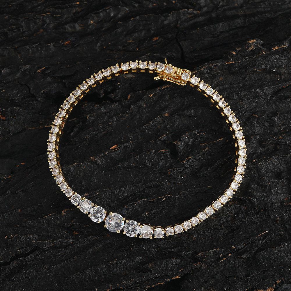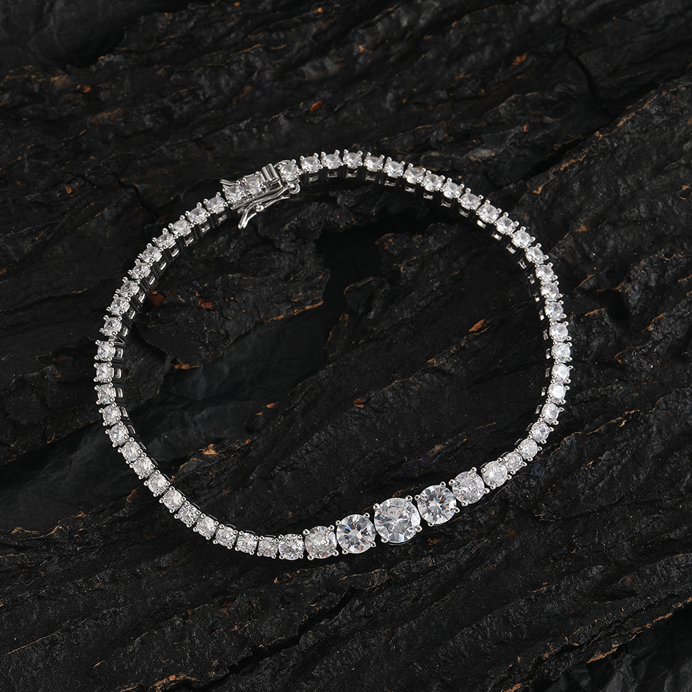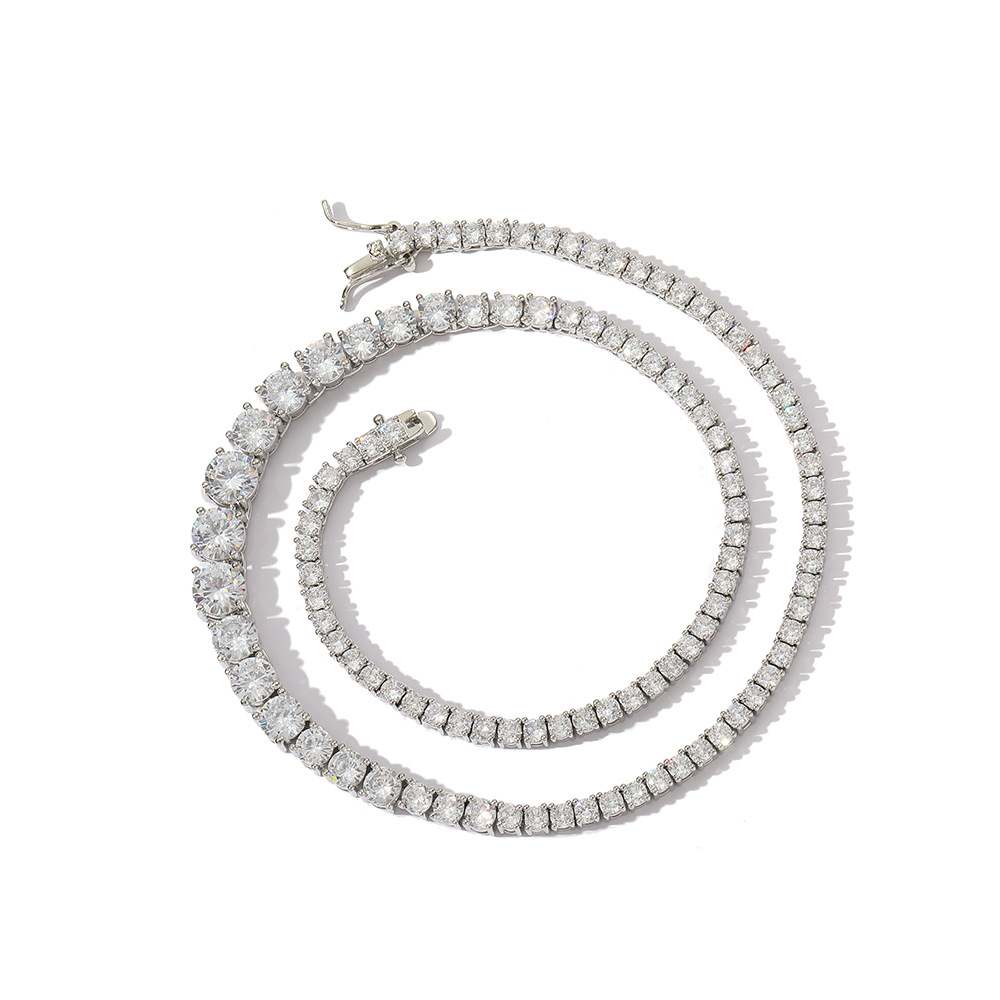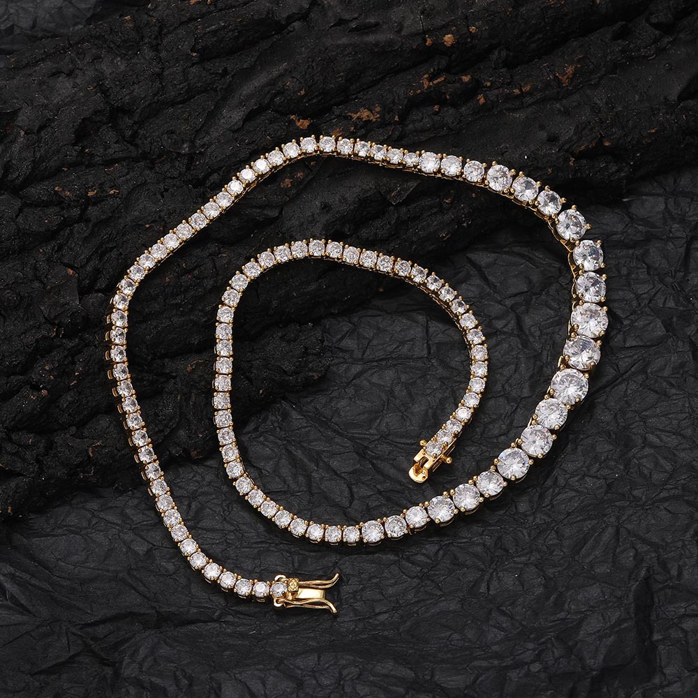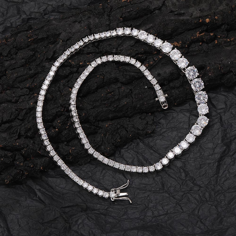 Hip Hop copper inlaid zircon gradient size single row tennis chain necklace bracelet