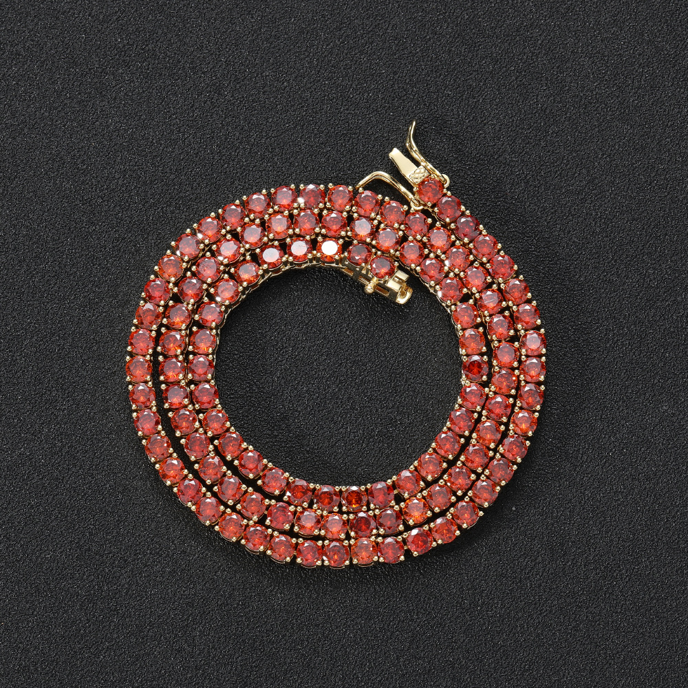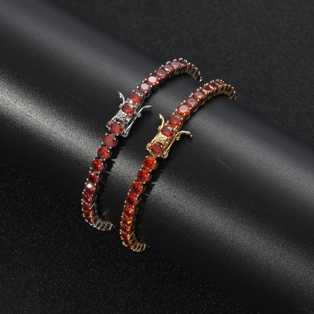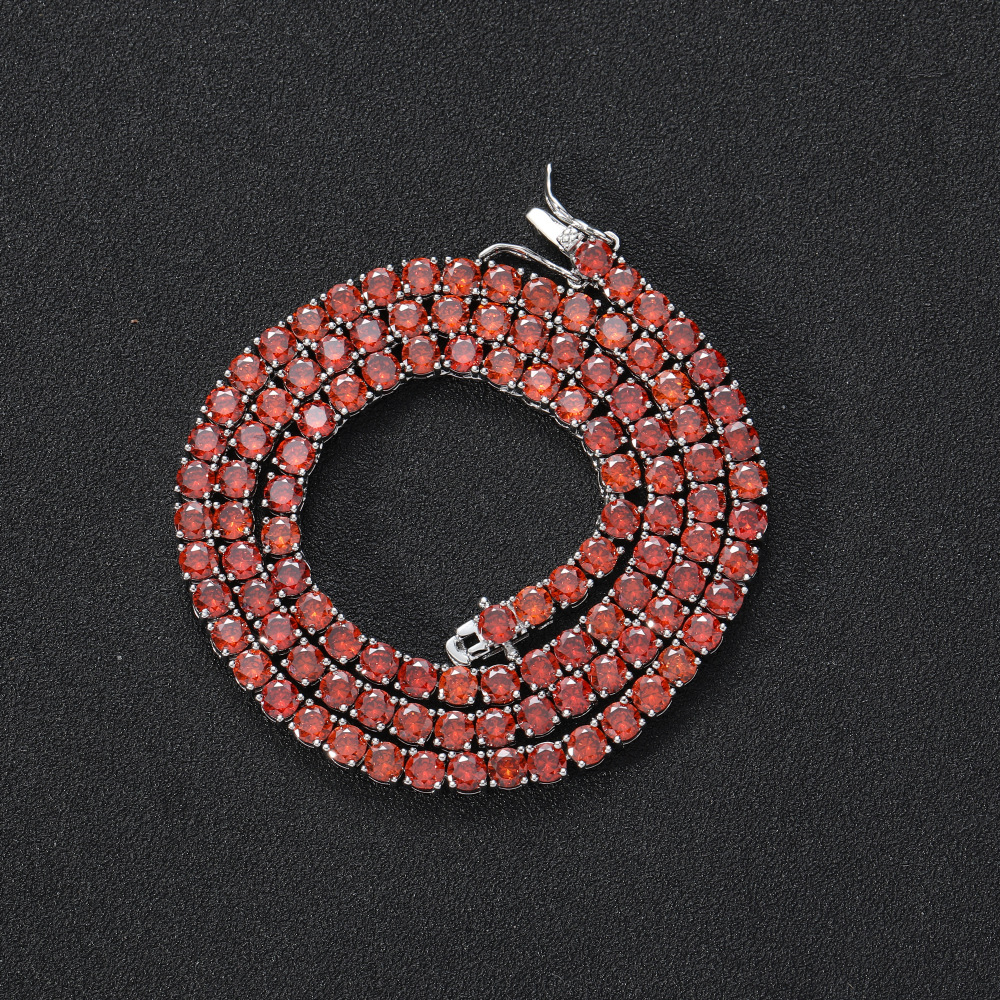 Hip Hop Copper Inlaid Zircon Red 4mm Single Row Tennis Chain Necklace Bracelet
