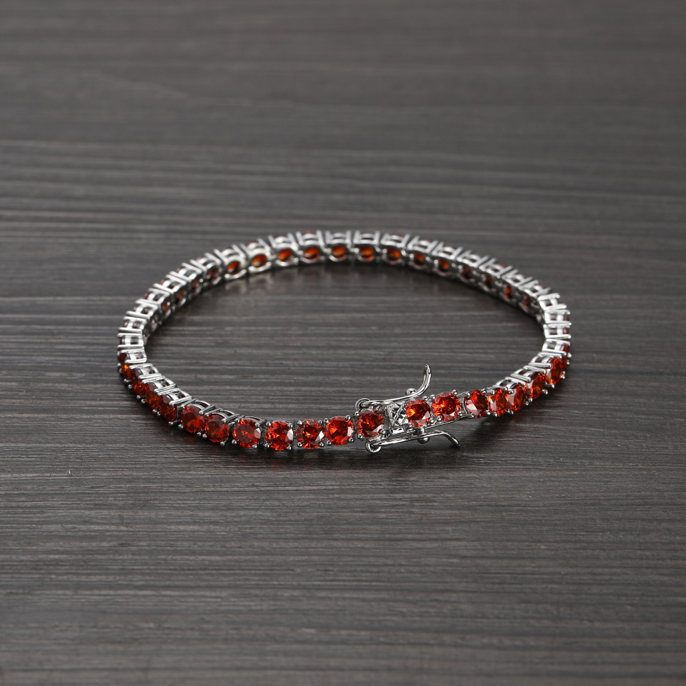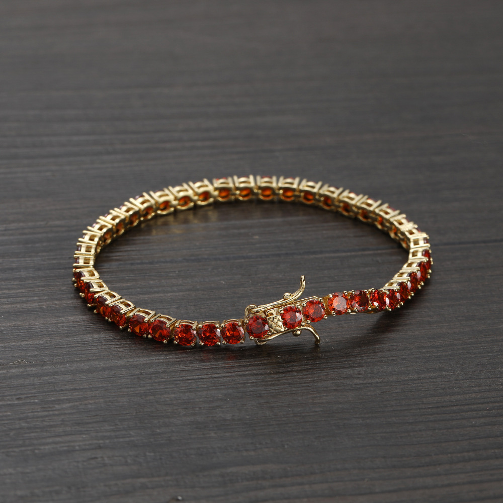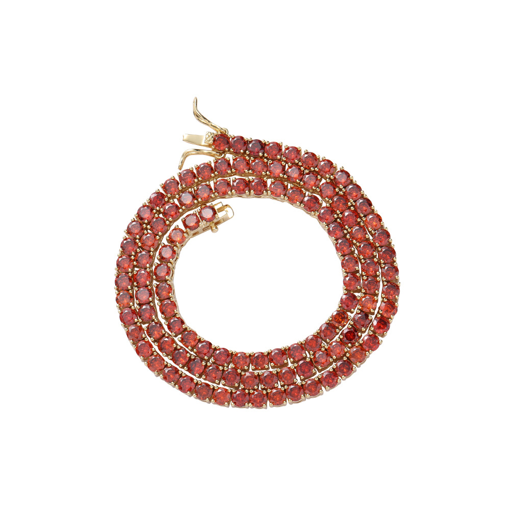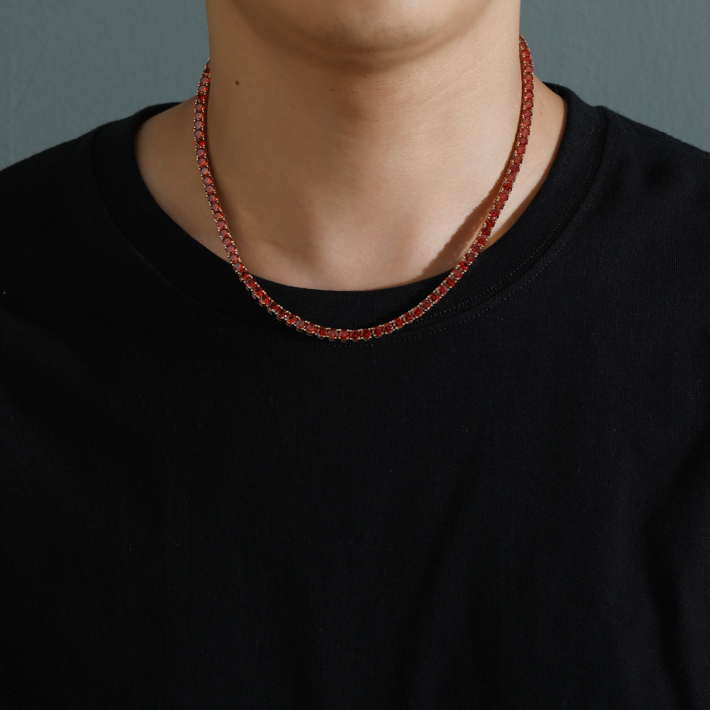 Hip Hop Copper Inlaid Zircon Red 4mm Single Row Tennis Chain Necklace Bracelet