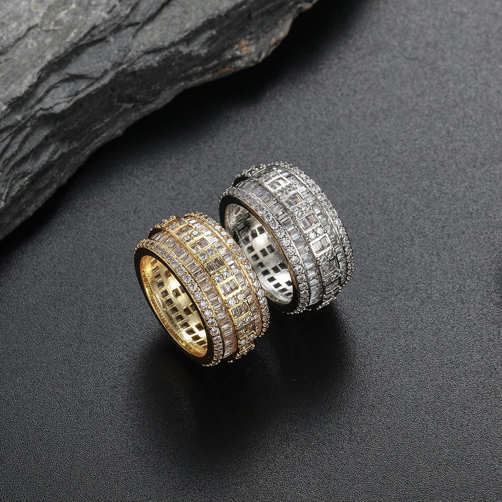 Hip Hop Copper Inlaid Zircon Ring 12mm Round Square Mix and Match Men’s Ring