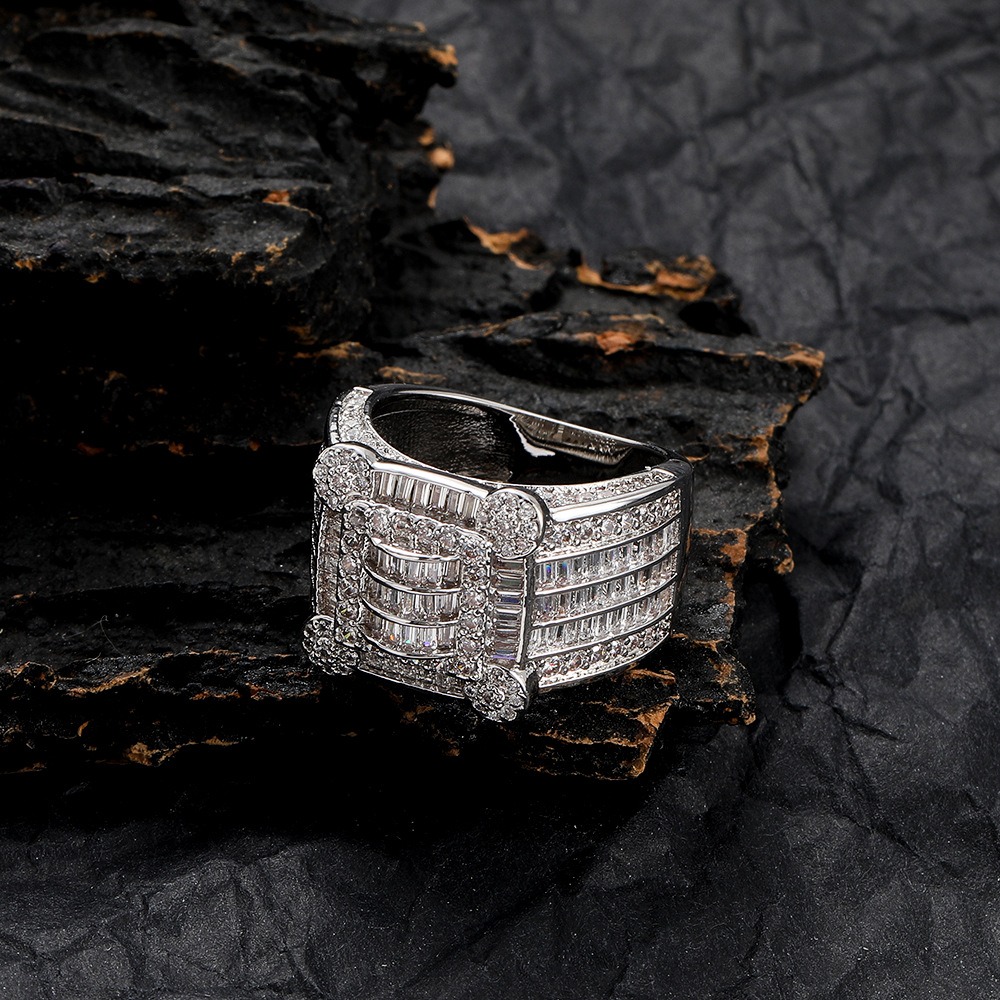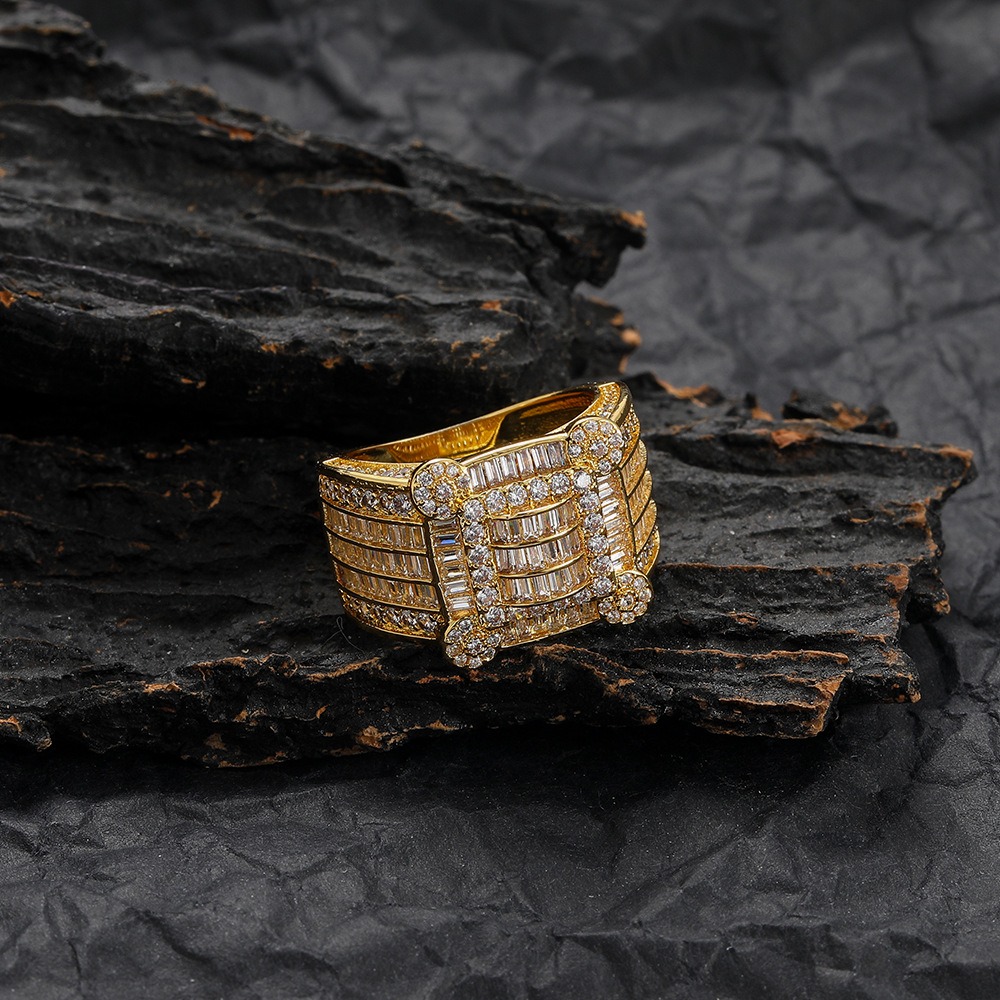 Hip Hop Copper Inlaid Zircon Ring 16*16mm Men’s Ring