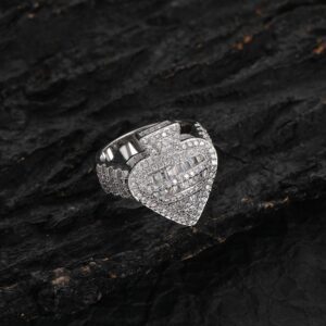 Hip Hop Copper Inlaid Zircon Ring 20mm*17mm Heart Couple Ring