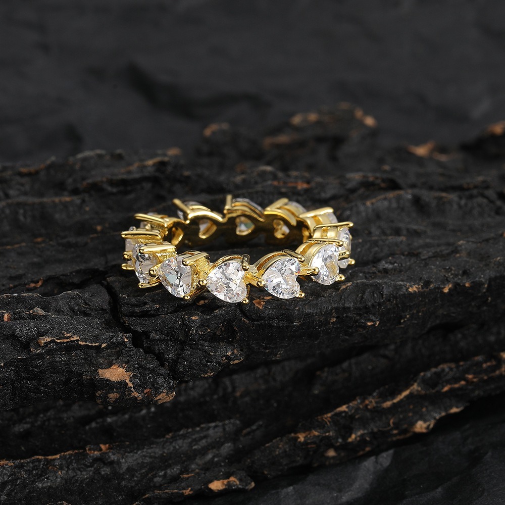 Hip Hop Copper Inlaid Zircon Ring 5mm Heart Ring for Women