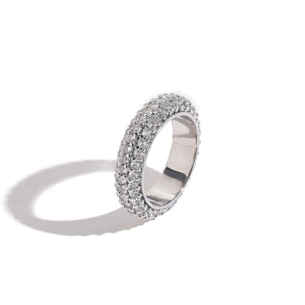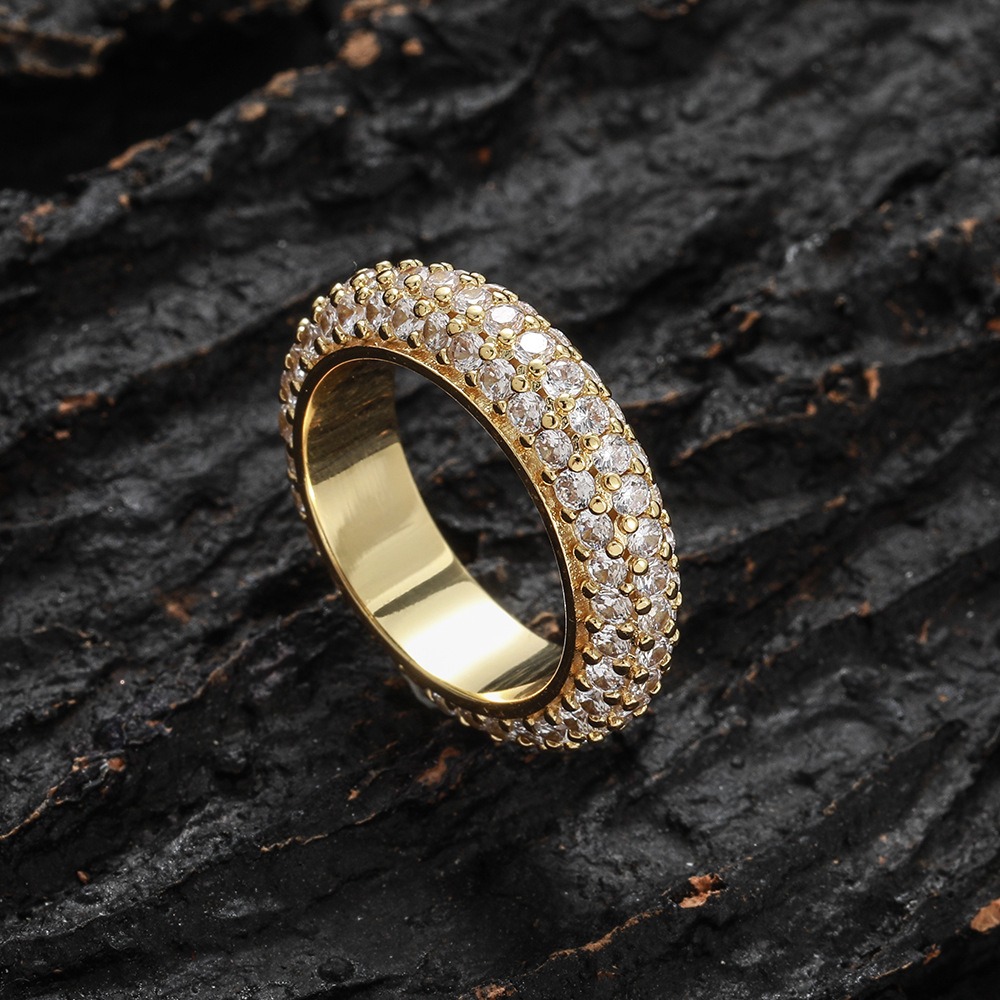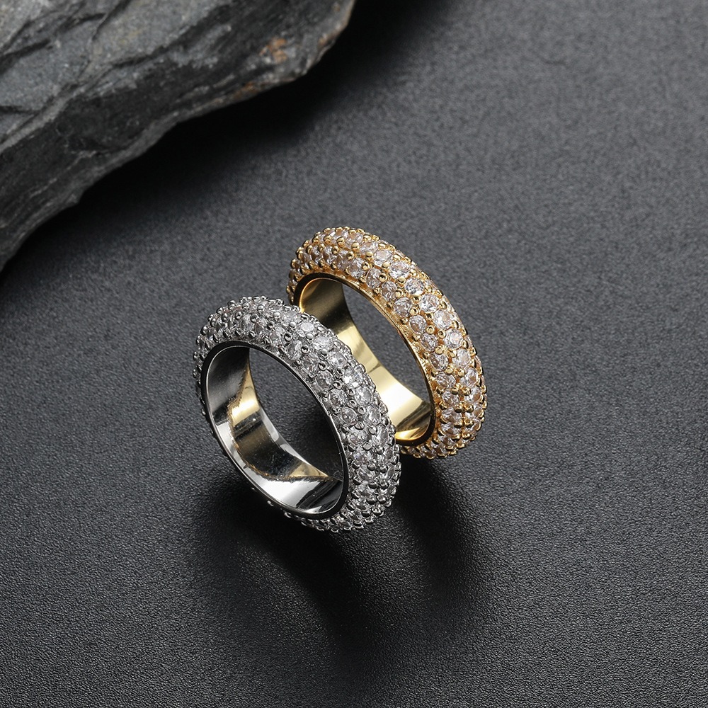 Hip Hop Copper Inlaid Zircon Ring 6mm 3 Row Zircon Women’s Ring