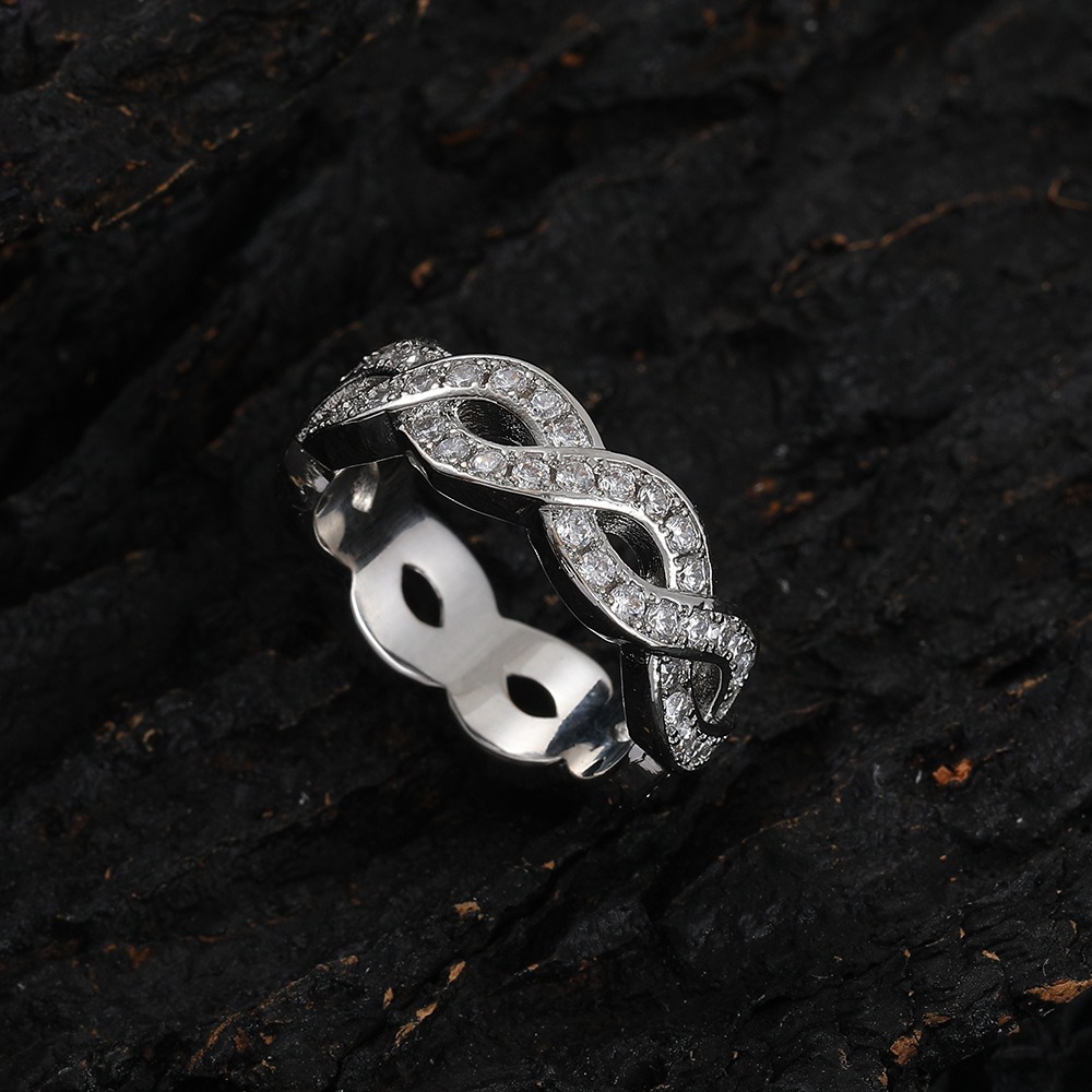 Hip Hop copper inlaid zircon ring 7mm figure 8 men’s ring