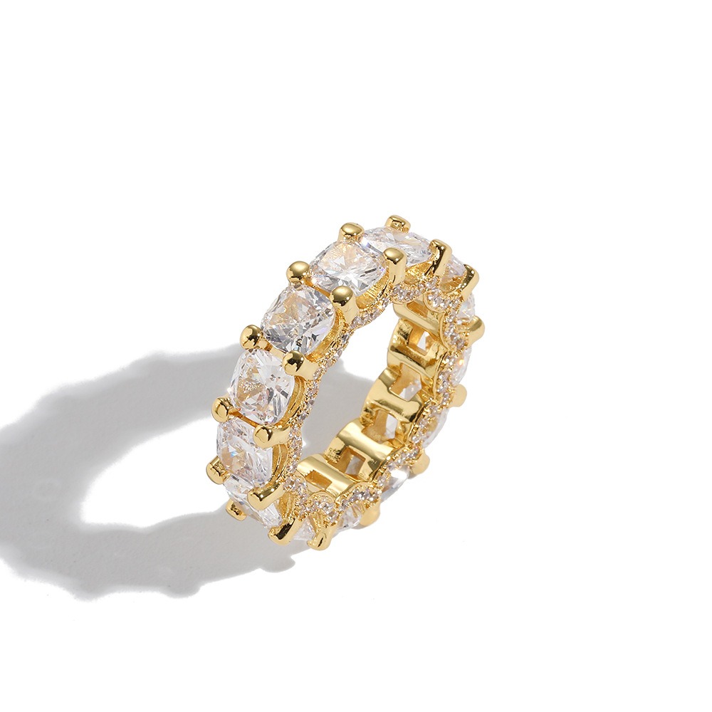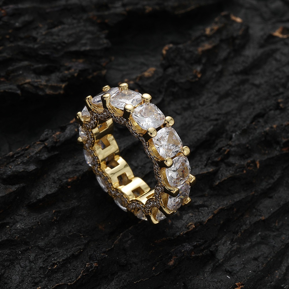 Hip Hop Copper Inlaid Zircon Ring 7mm Square Men’s Ring