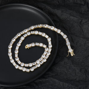 Hip Hop copper inlaid zircon square round mix single row tennis chain necklace bracelet