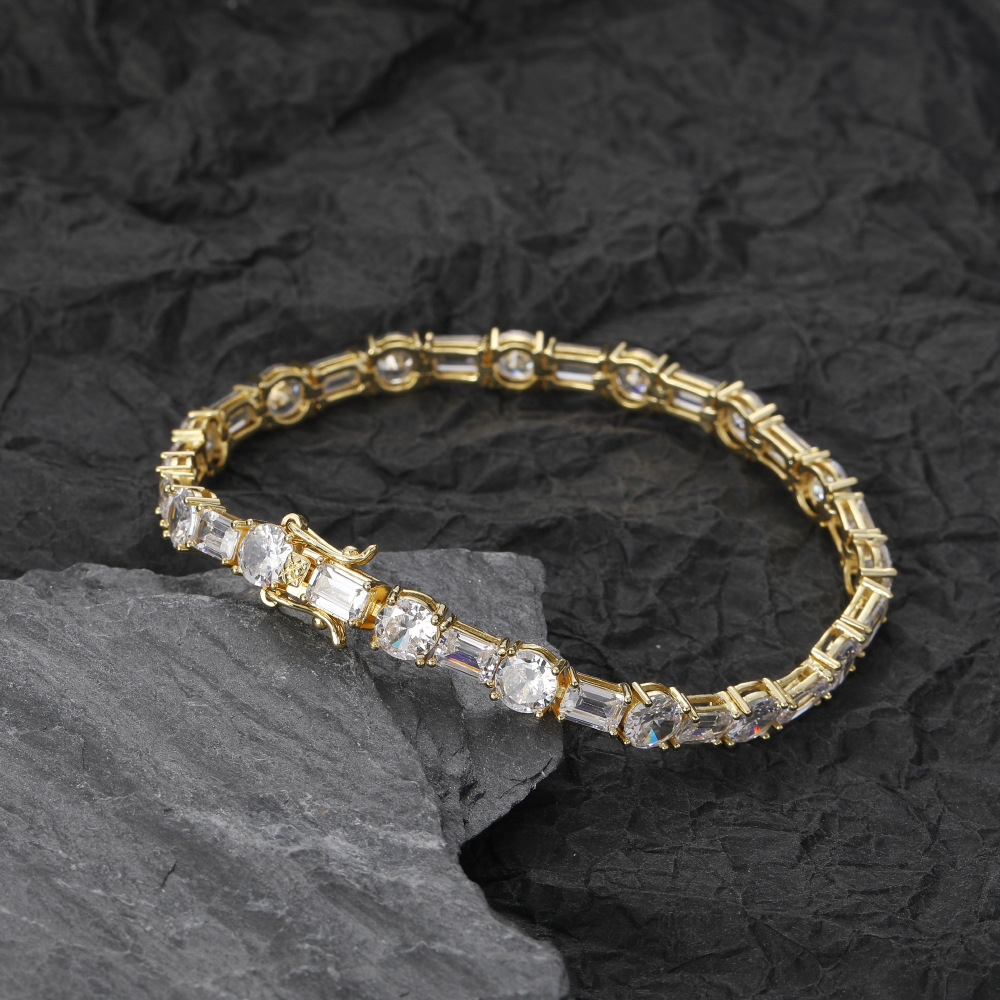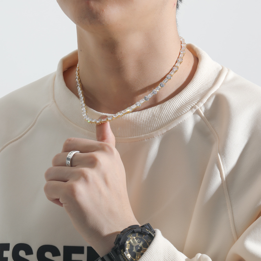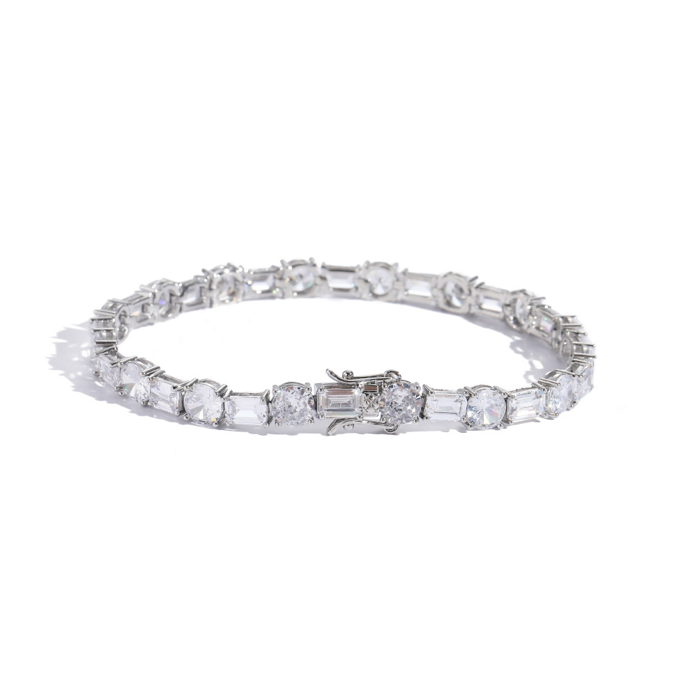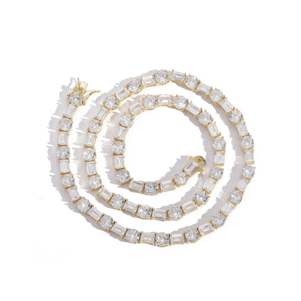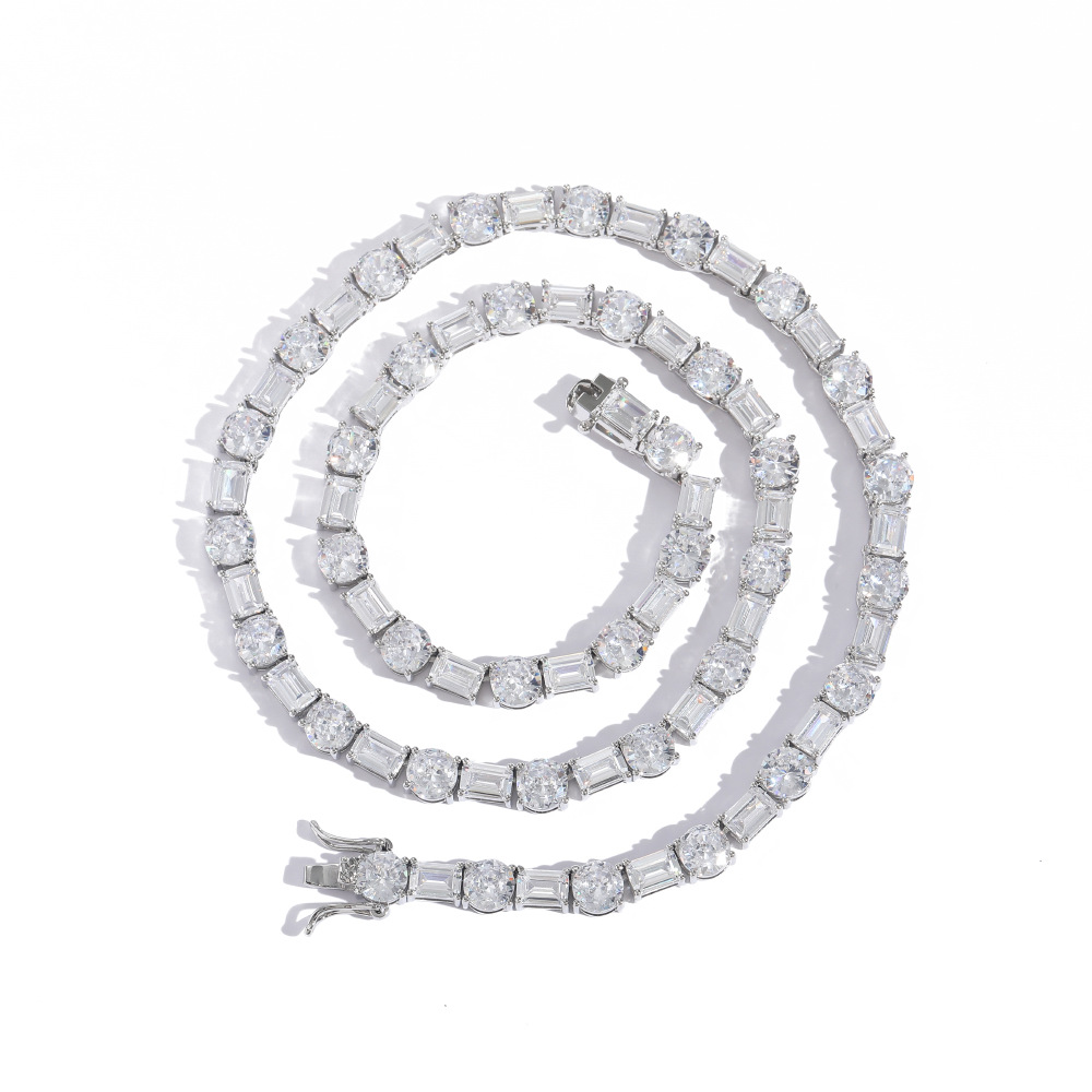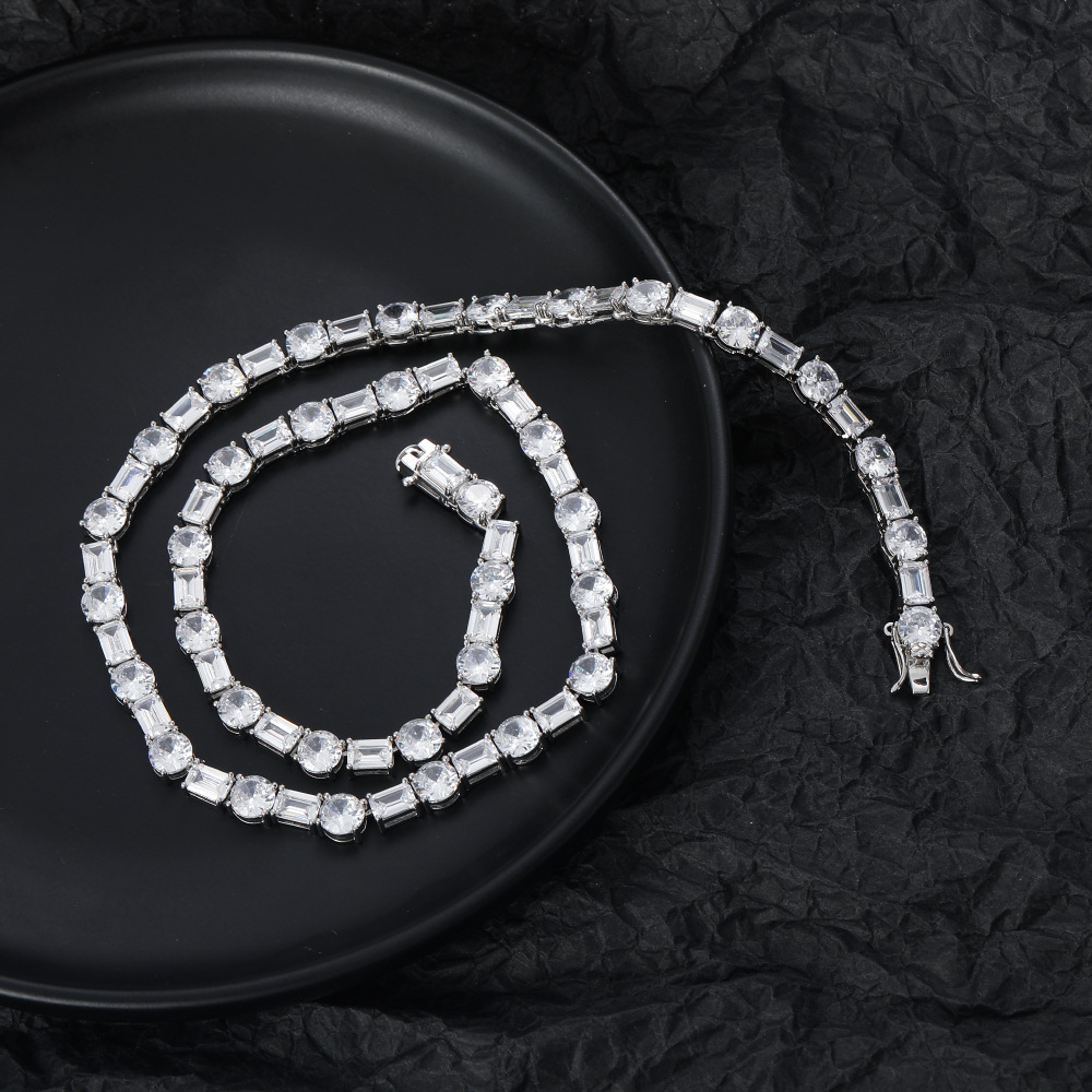 Hip Hop copper inlaid zircon square round mix single row tennis chain necklace bracelet