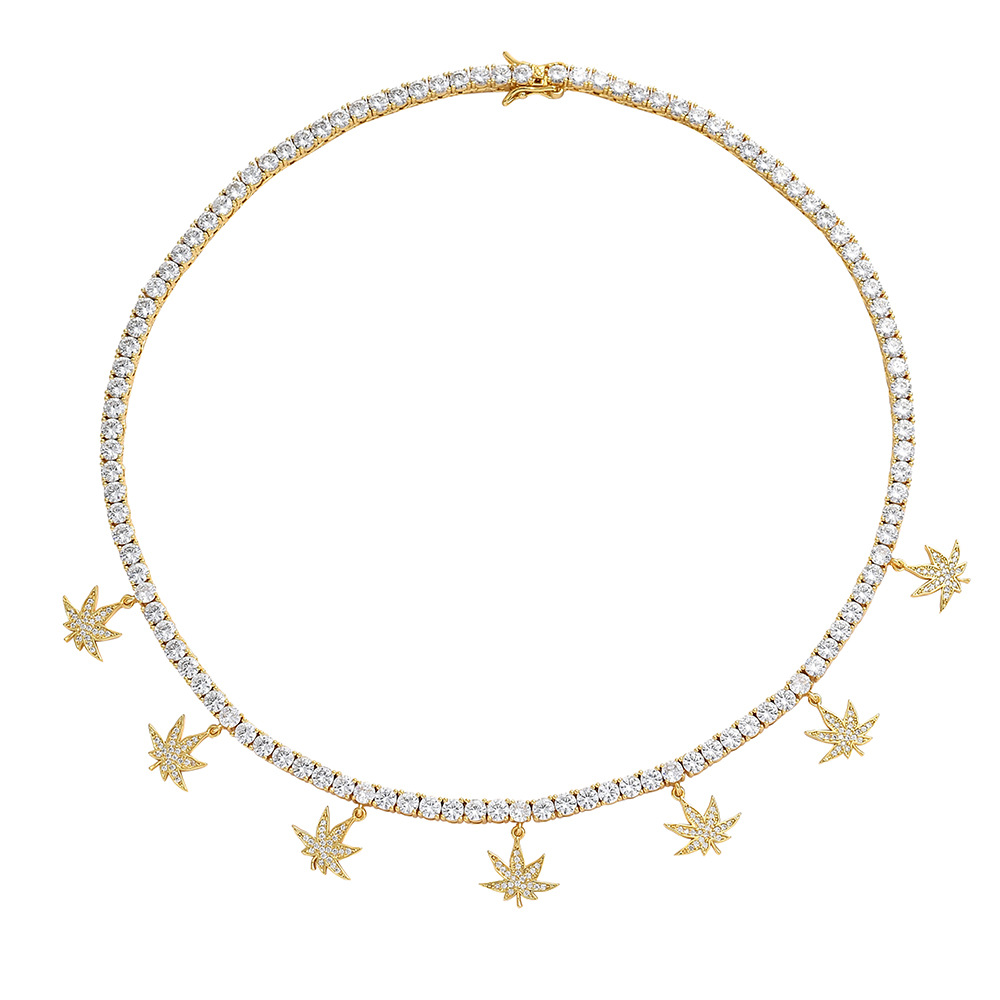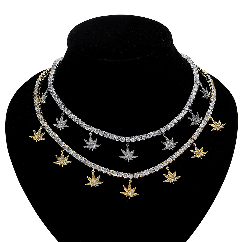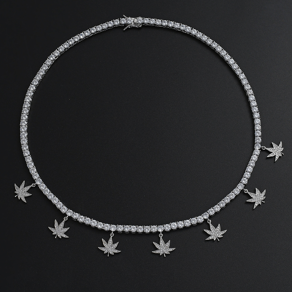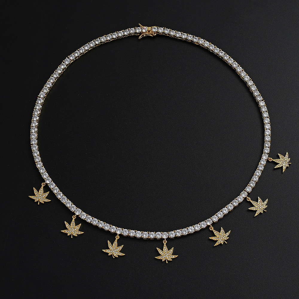 Hip Hop copper inlaid zircon tennis ball chain 4mm Maple Leaf Chinese Restaurant single row chain necklace