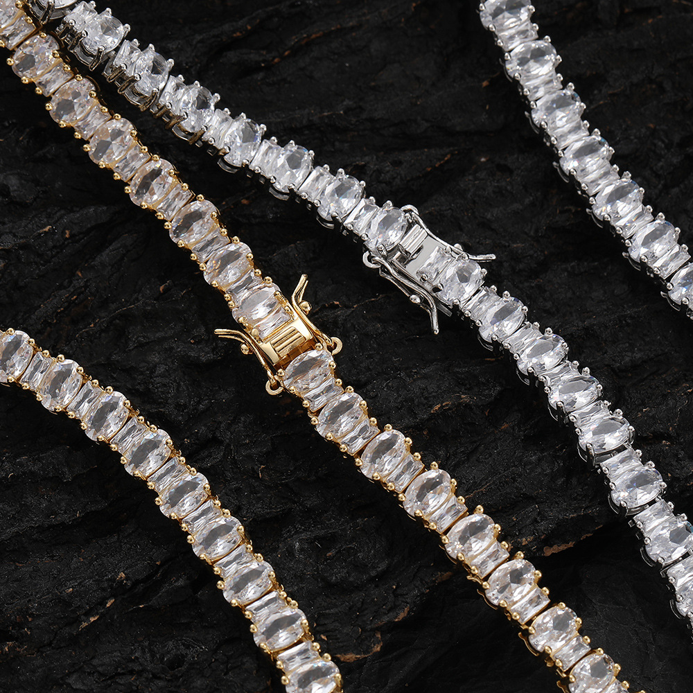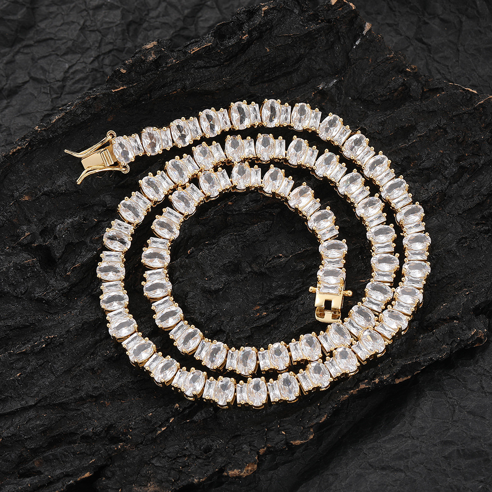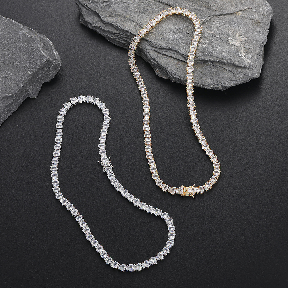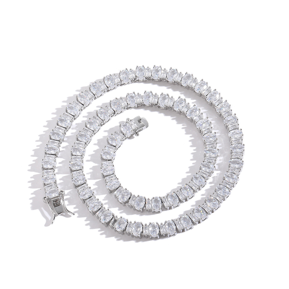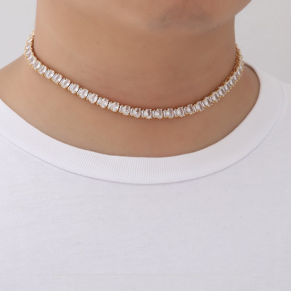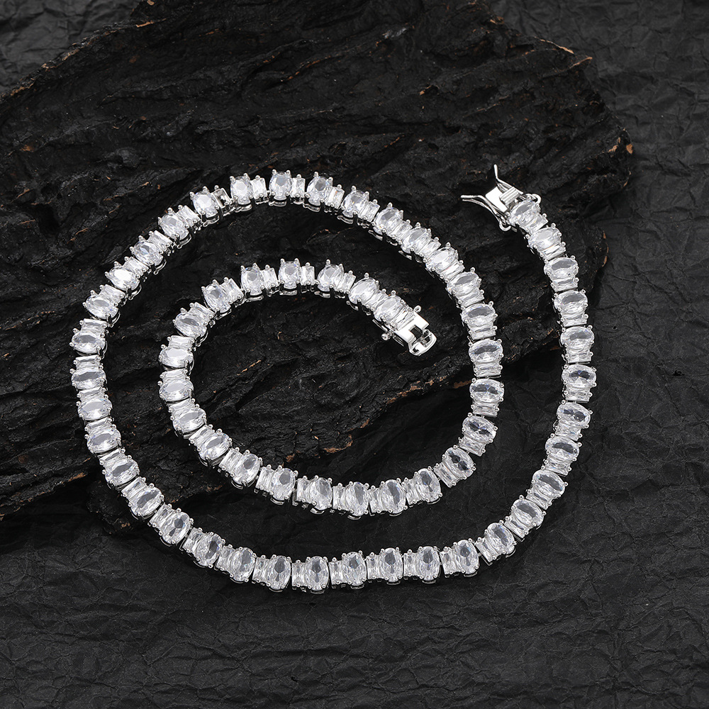 Hip Hop copper inlaid zircon tennis ball chain oval single row chain necklace
