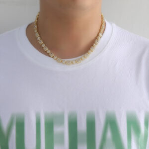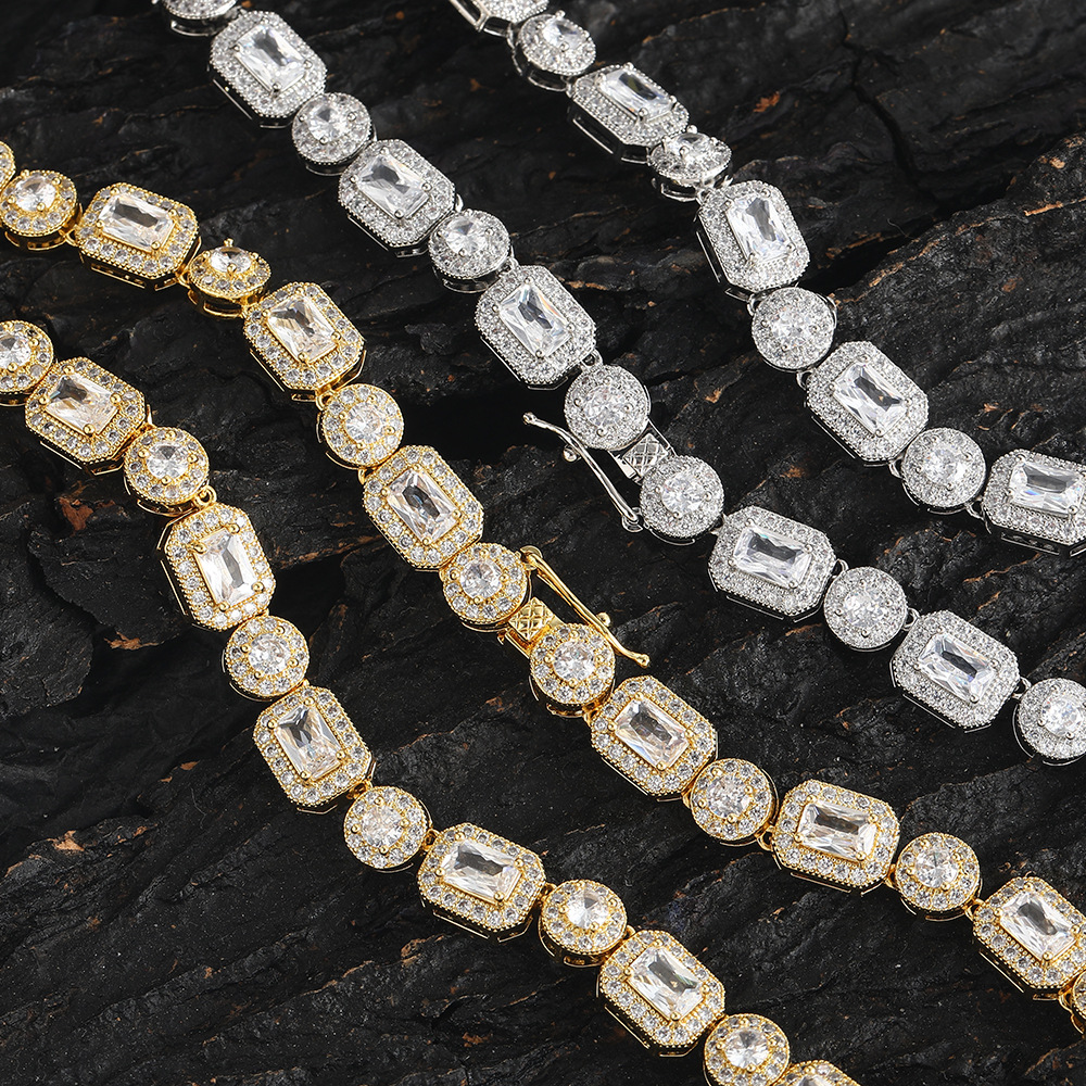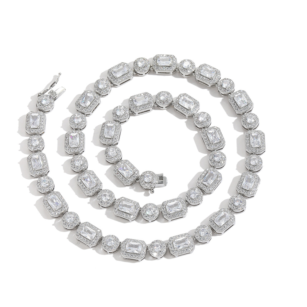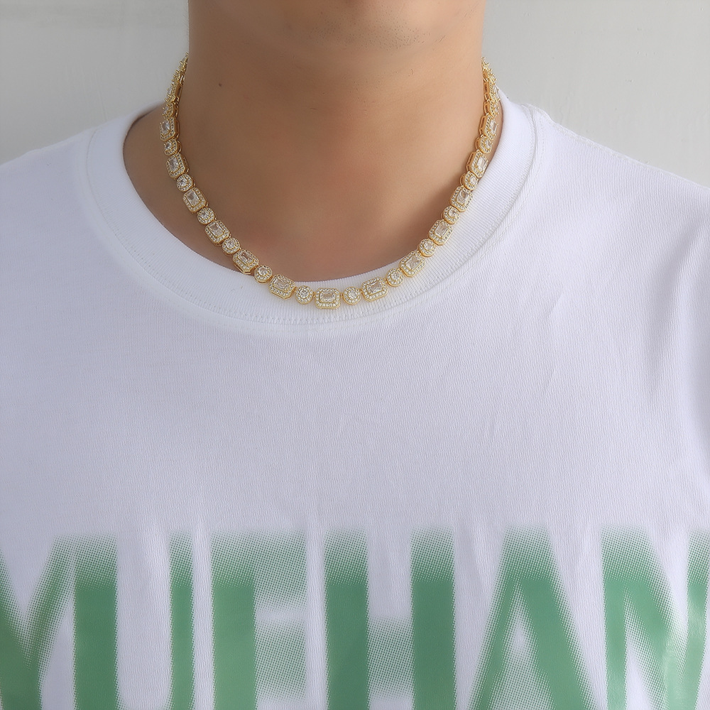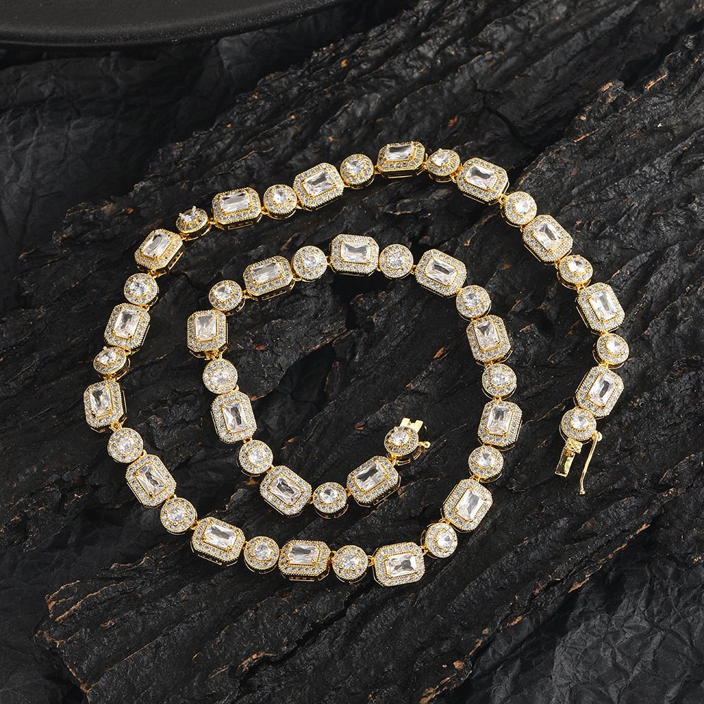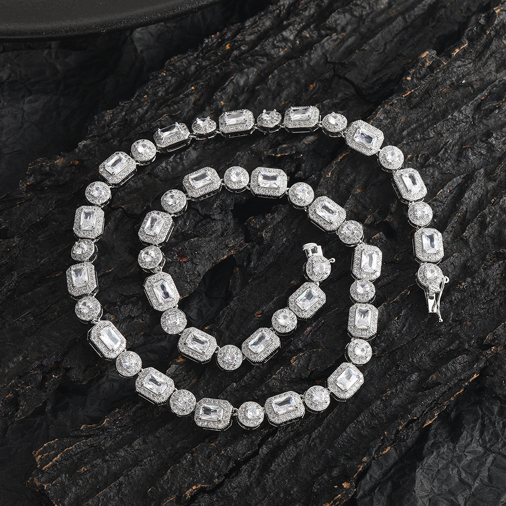 Hip Hop copper inlaid zircon tennis ball chain round square single row necklace