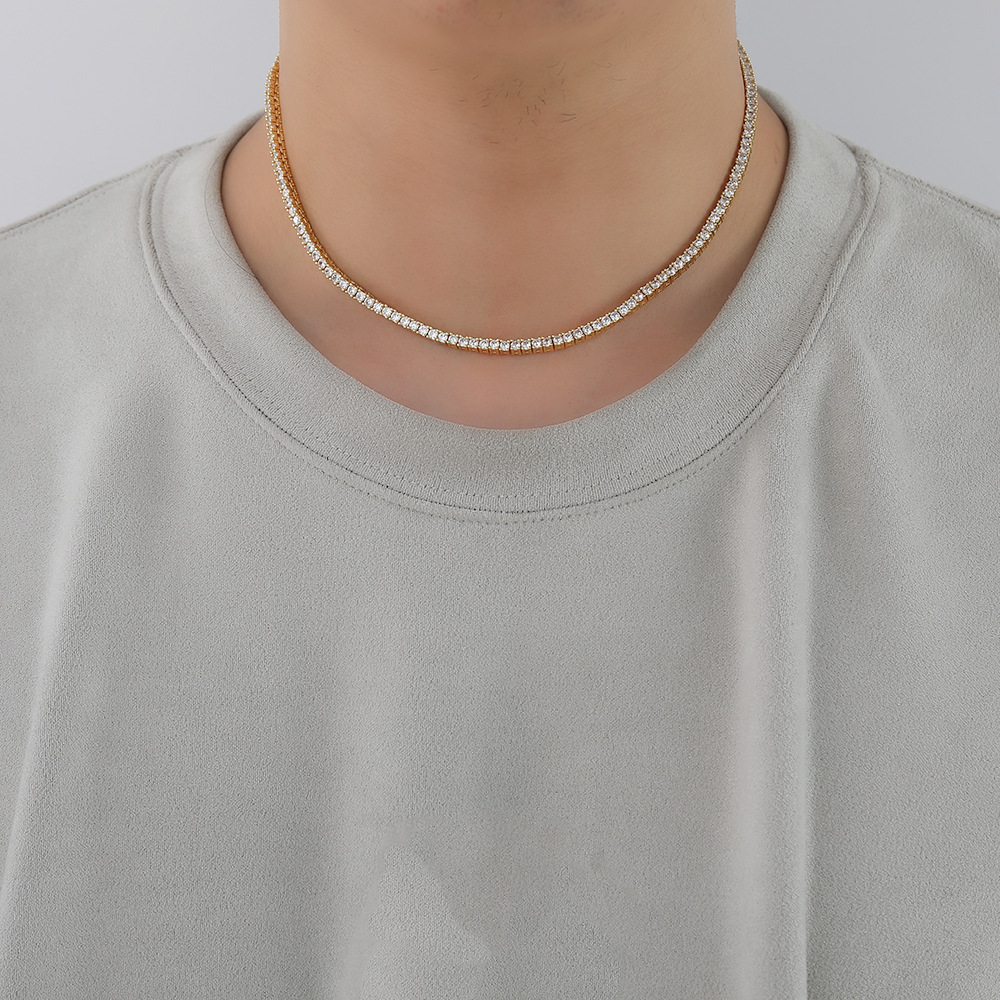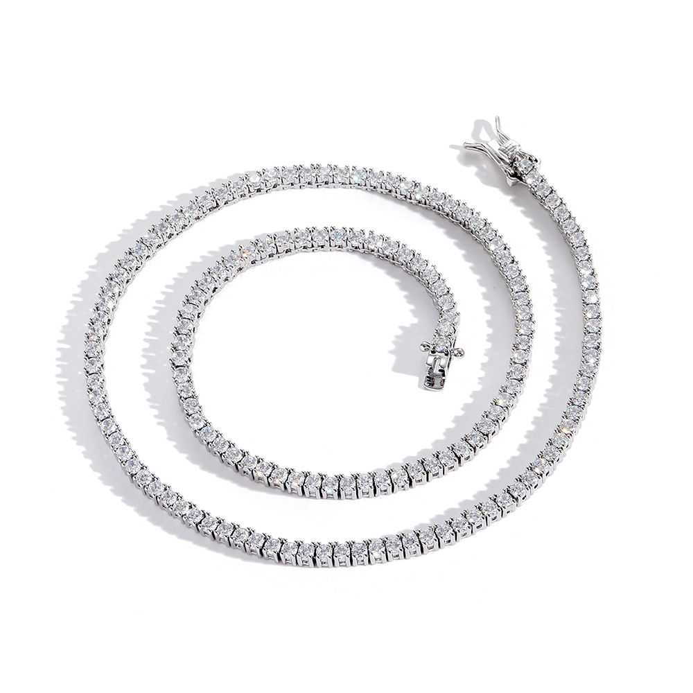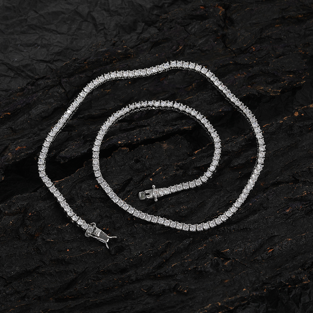 LXXL4016 Hip Hop Copper Inlaid Zircon 3mm Single Row 3 Prong Tennis Chain Necklace