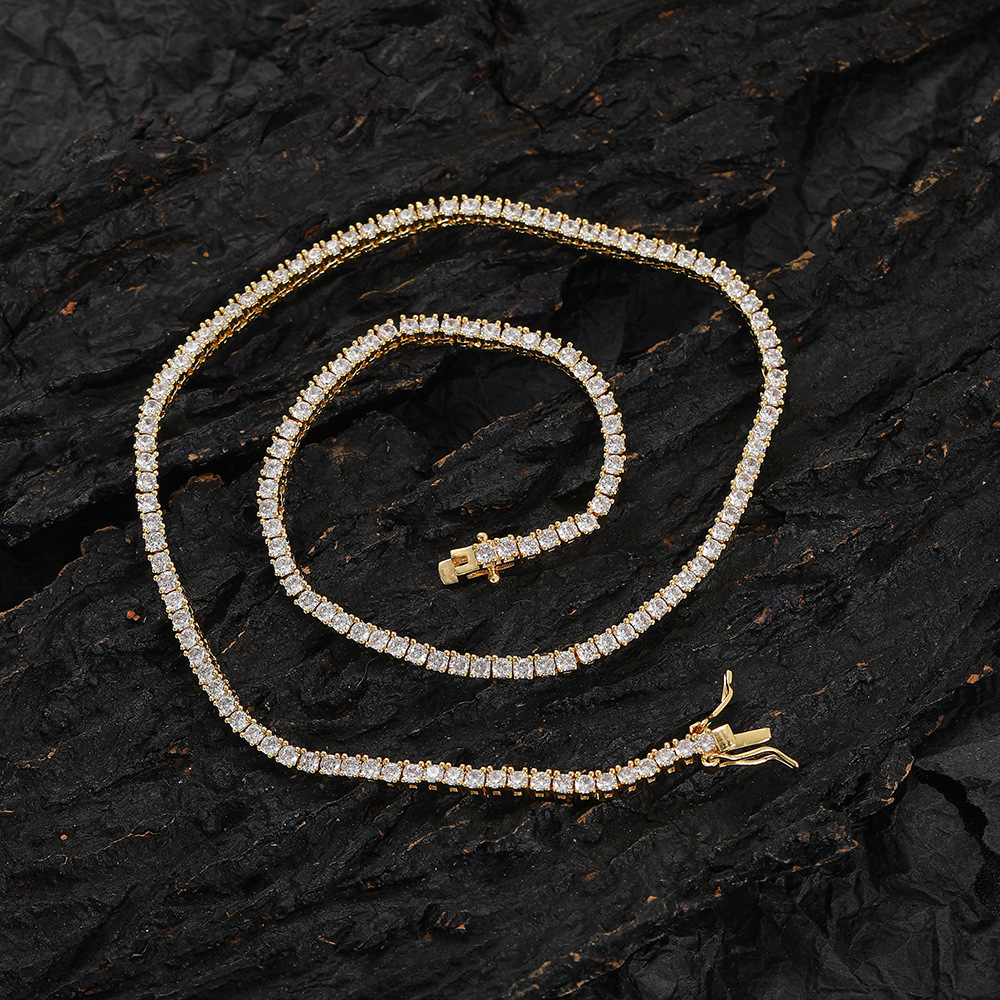 Hip Hop Copper Inlaid Zircon Tennis Chain 2.5mm Single Row Necklace Bracelet