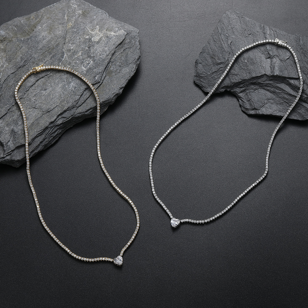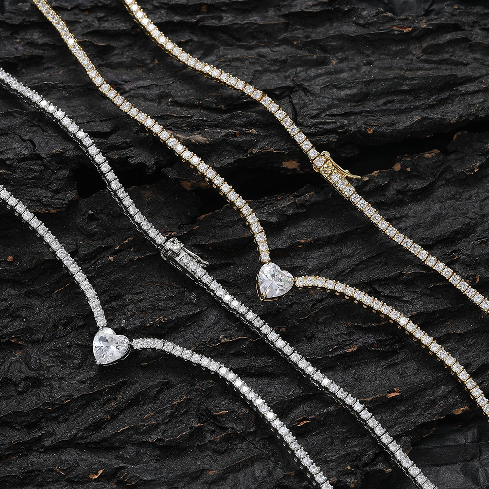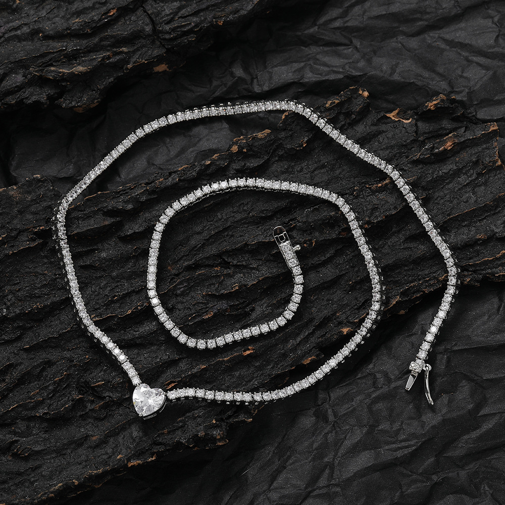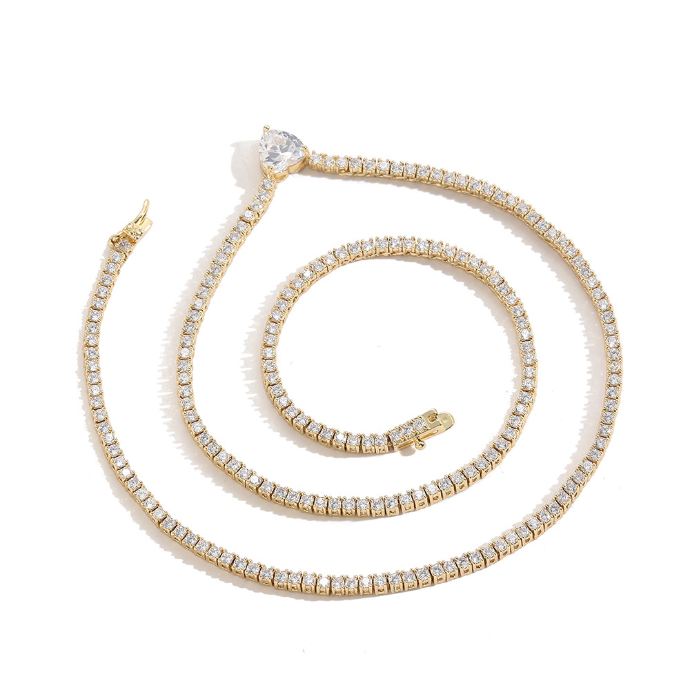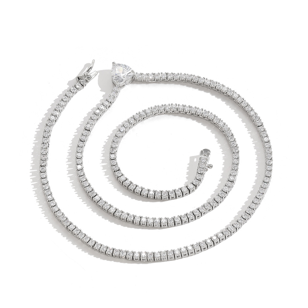 Hip Hop Copper Inlaid Zircon Tennis Chain 2mm Single Row Chain Necklace Bracelet