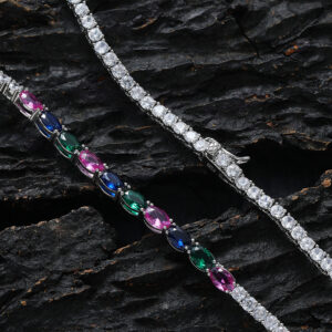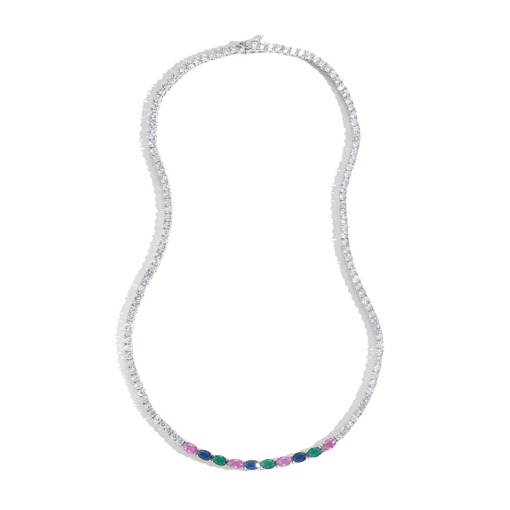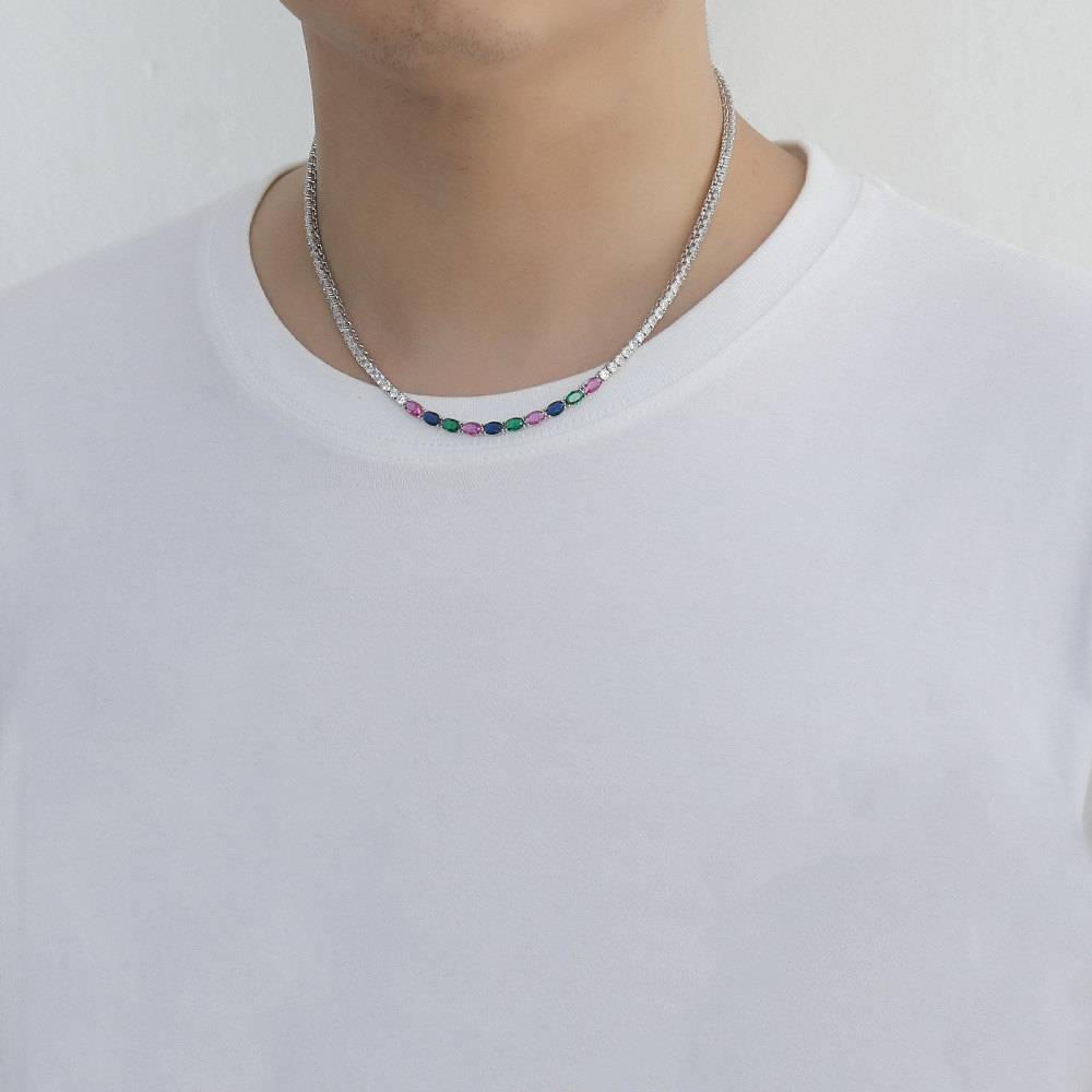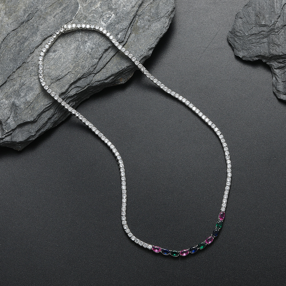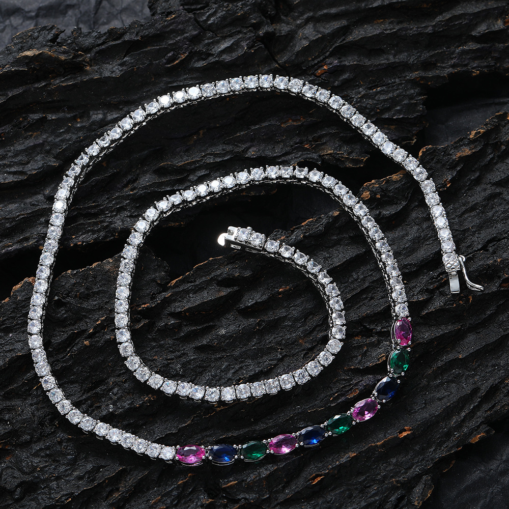 Hip Hop Copper Inlaid Zircon Tennis Chain 3mm Color Oval Single Row Chain Necklace