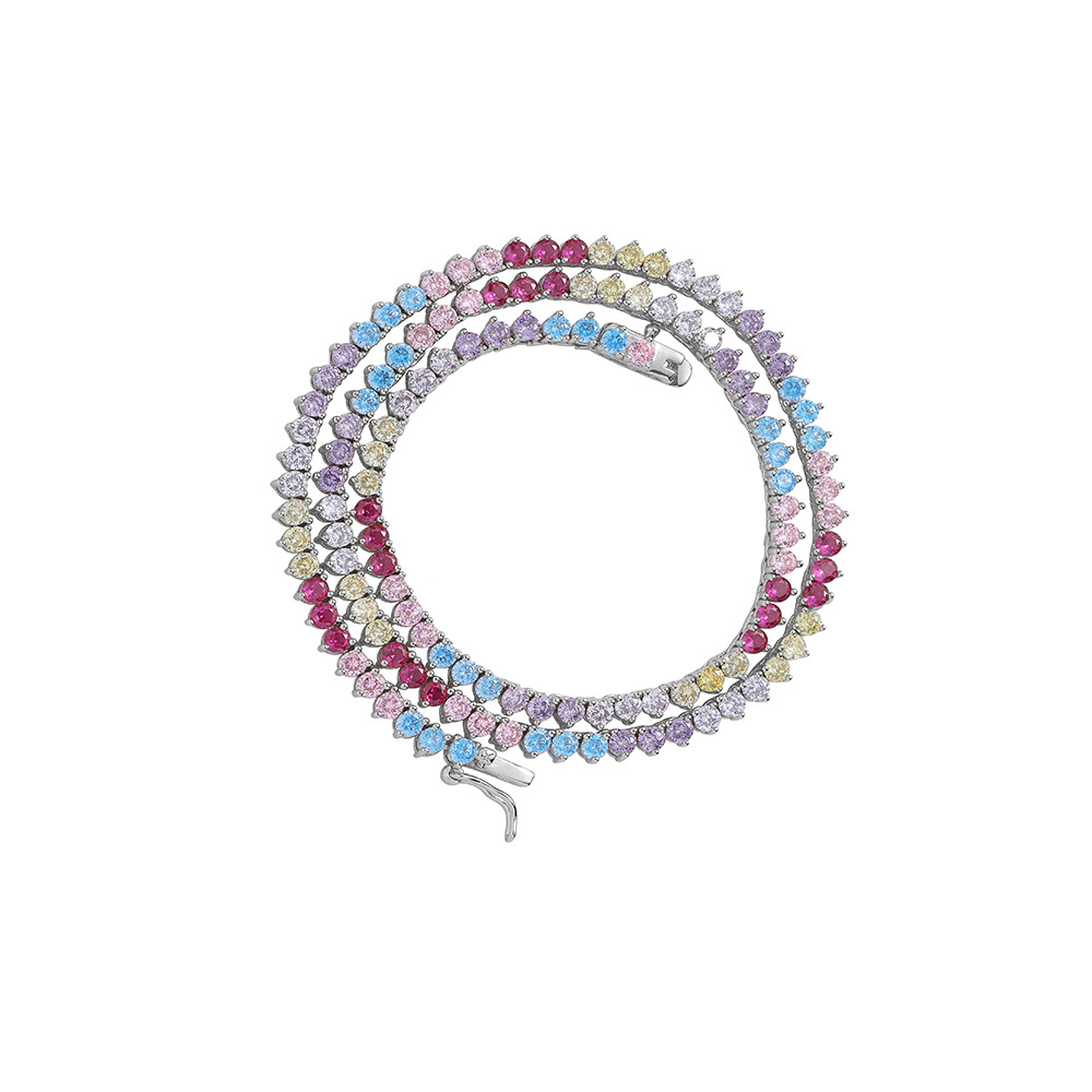 LXXL4004 Hip Hop copper inlaid zircon tennis chain colorful heart necklace bracelet