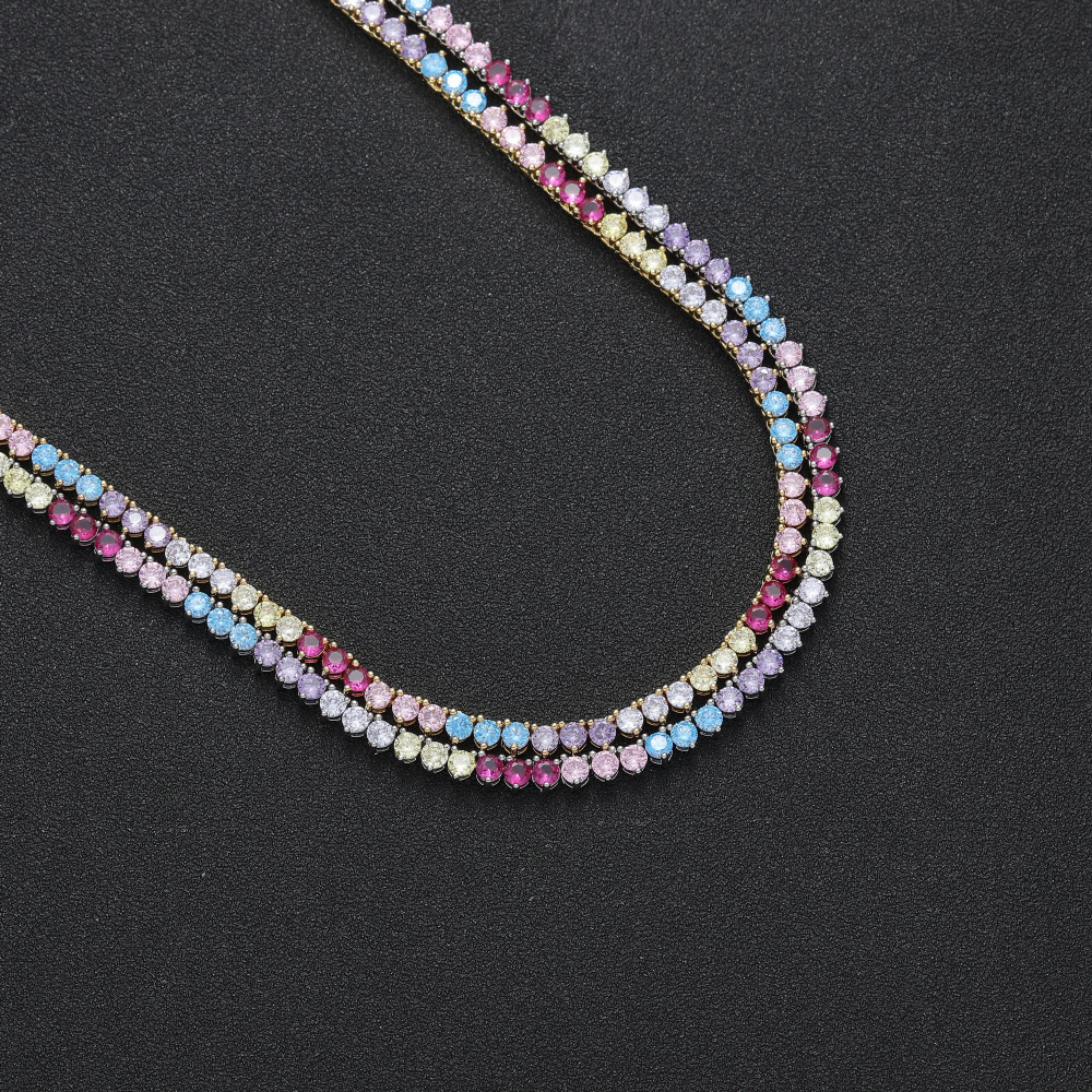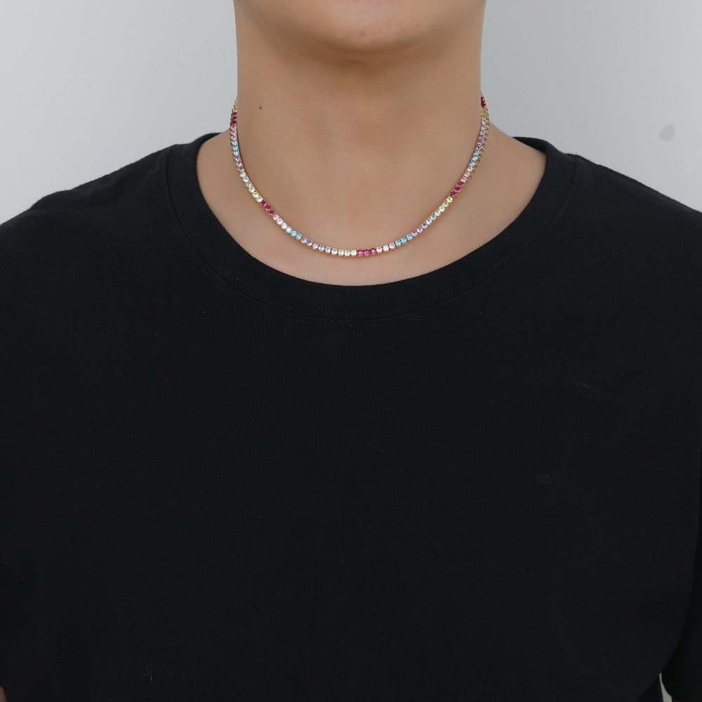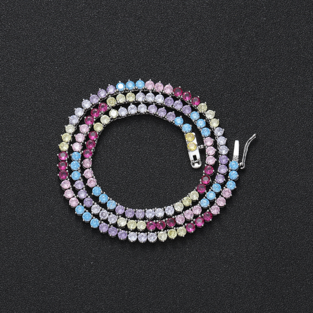 Hip Hop Copper Inlaid Zircon Tennis Chain 3mm Color Single Row Chain Necklace