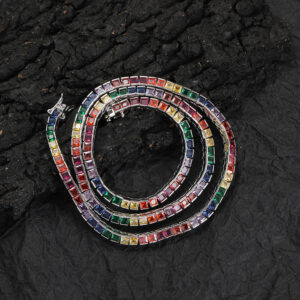 Hip Hop Copper Inlaid Zircon Tennis Chain 3mm Color Square Single Row Chain Necklace