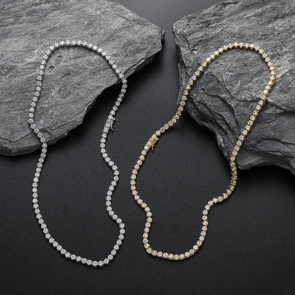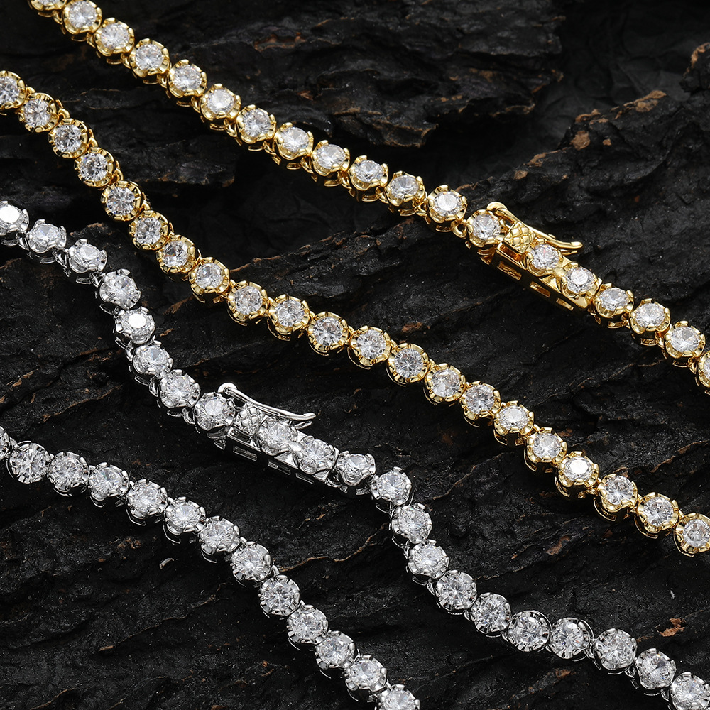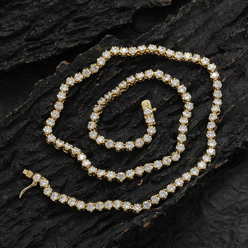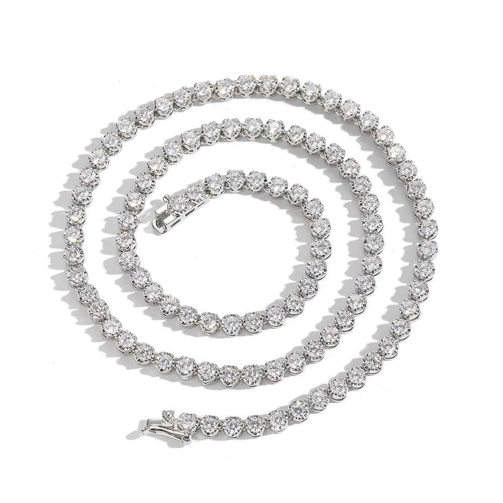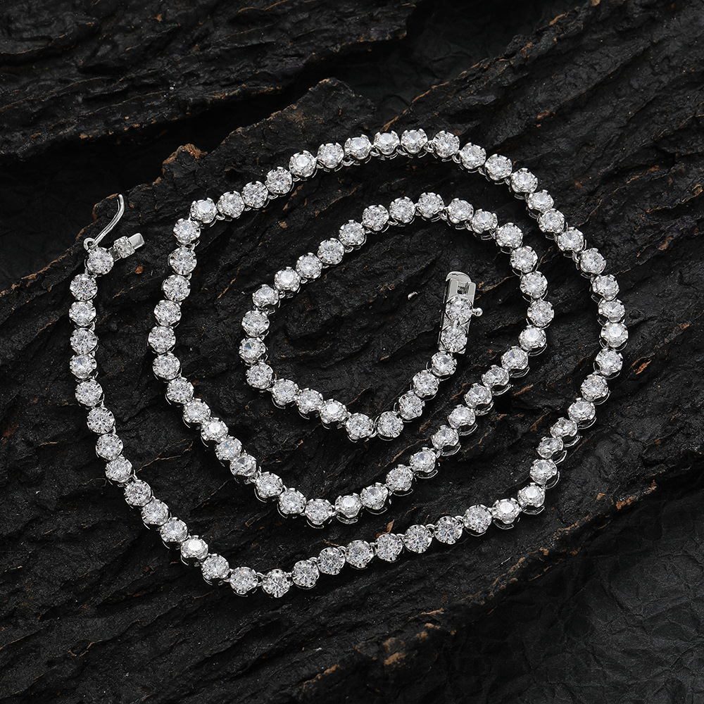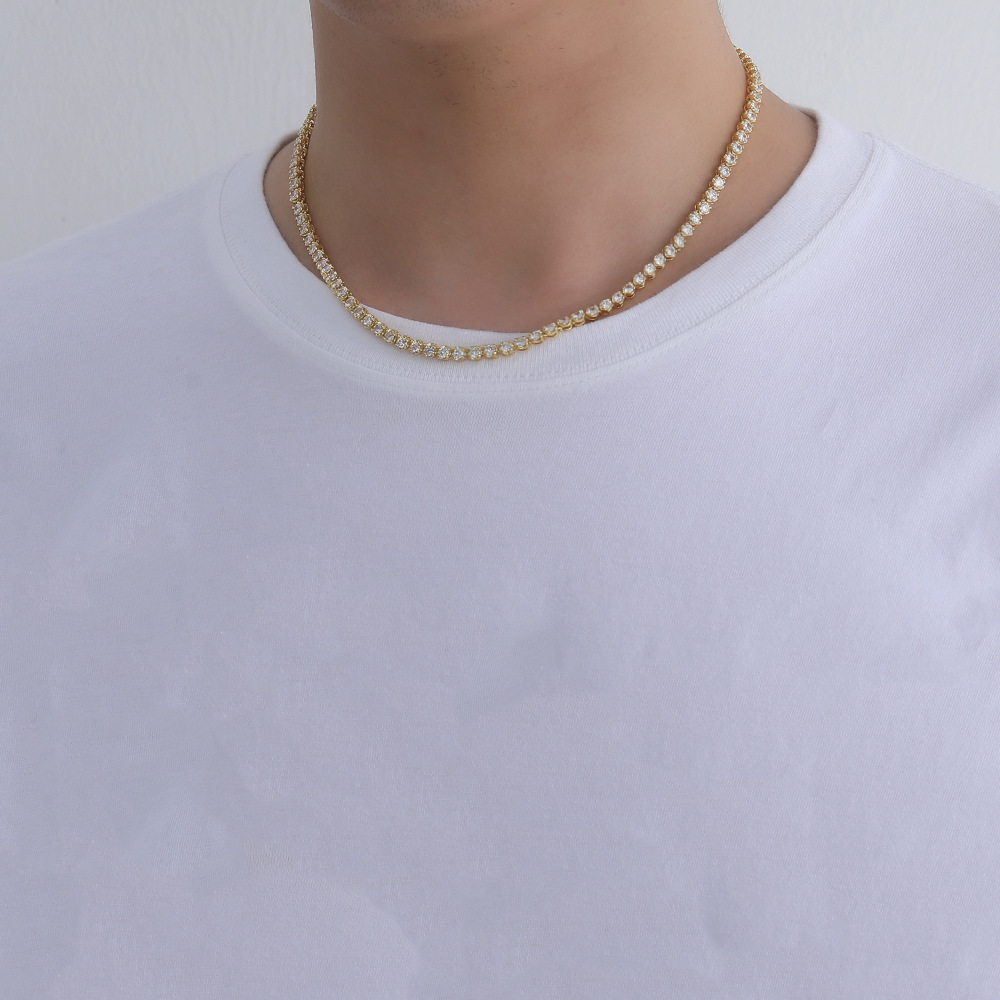 Hip Hop Copper Inlaid Zircon Tennis Chain 3mm Single Row Chain Necklace
