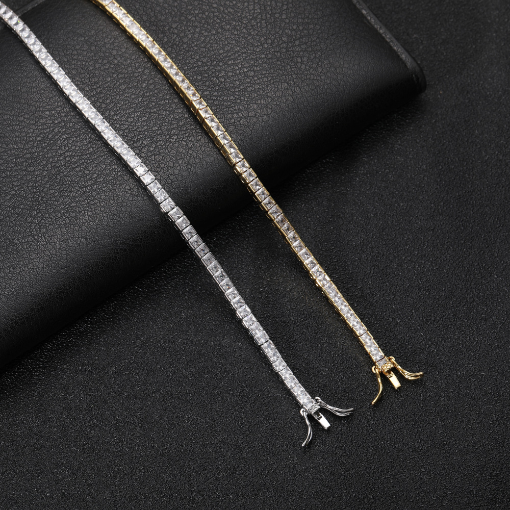 Hip Hop Copper Inlaid Zircon Tennis Chain 3mm Single Row Chain Necklace