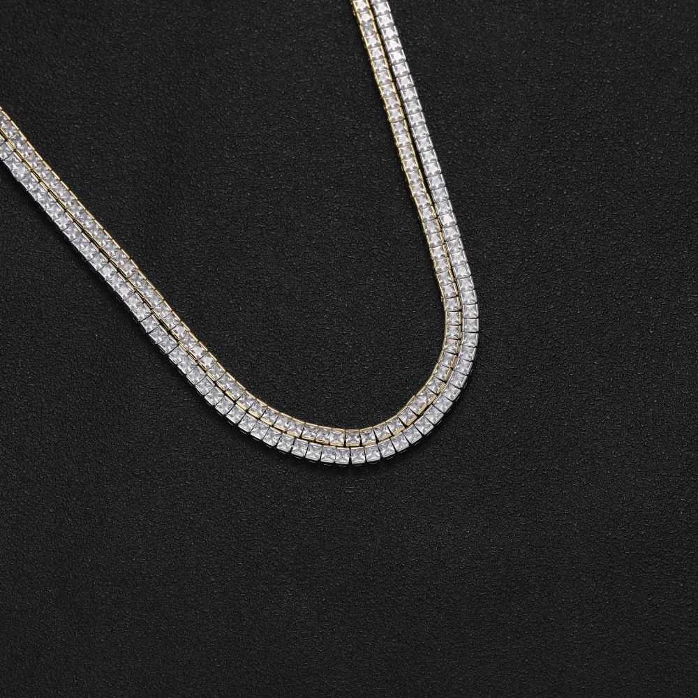 LXXL4018 Hip Hop copper inlaid zircon 6mm 3 prongs chain single row tennis chain necklace