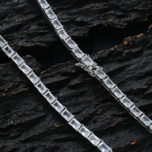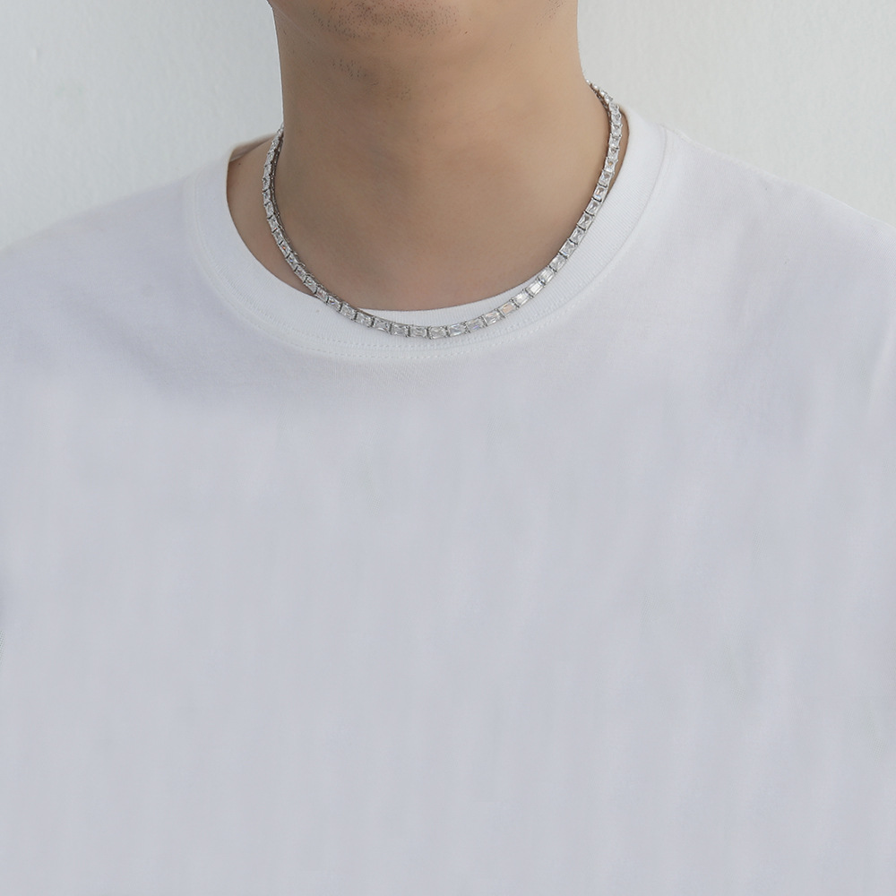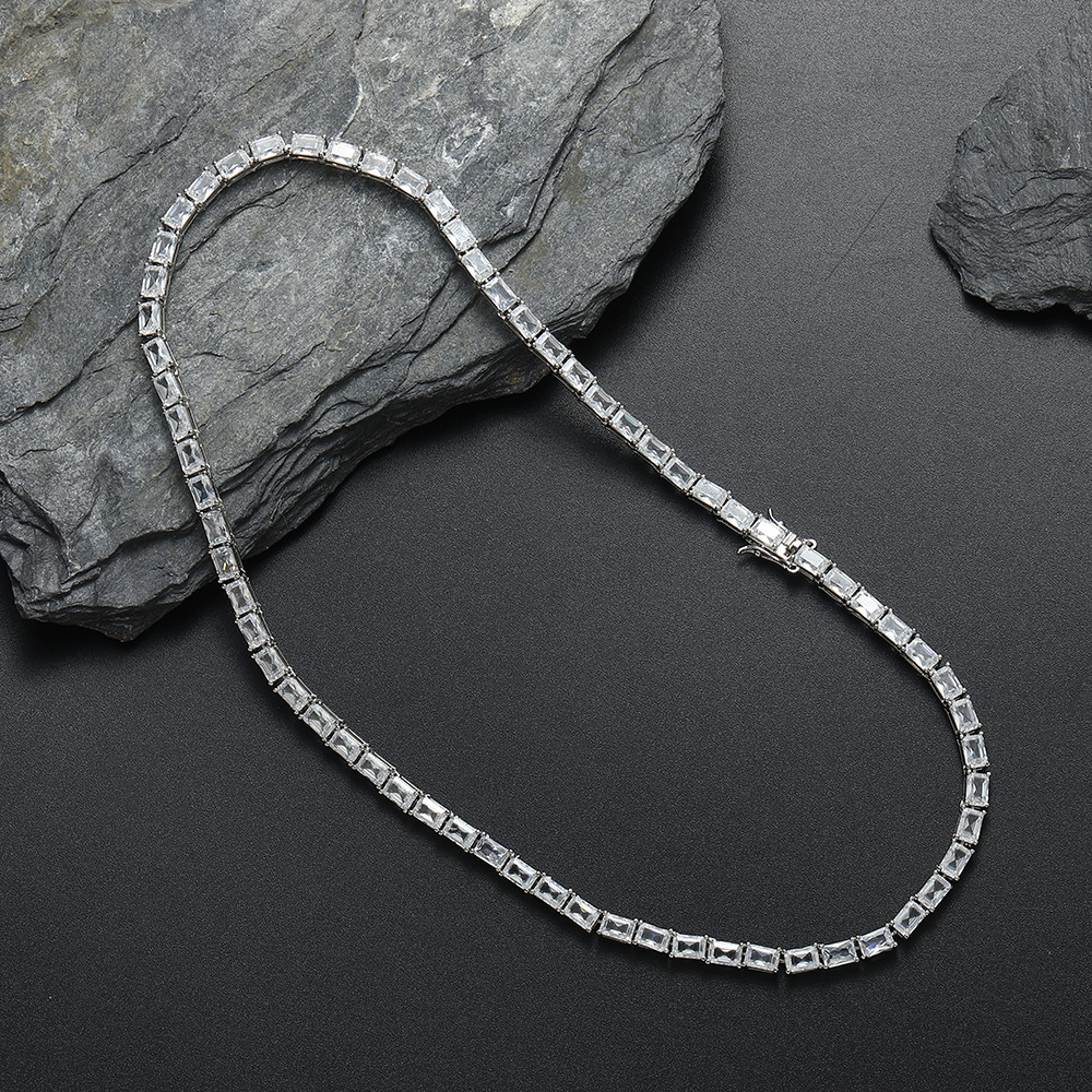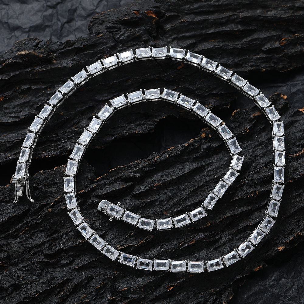 Hip Hop Copper Inlaid Zircon Tennis Chain 4*6mm Square Single Row Chain Necklace