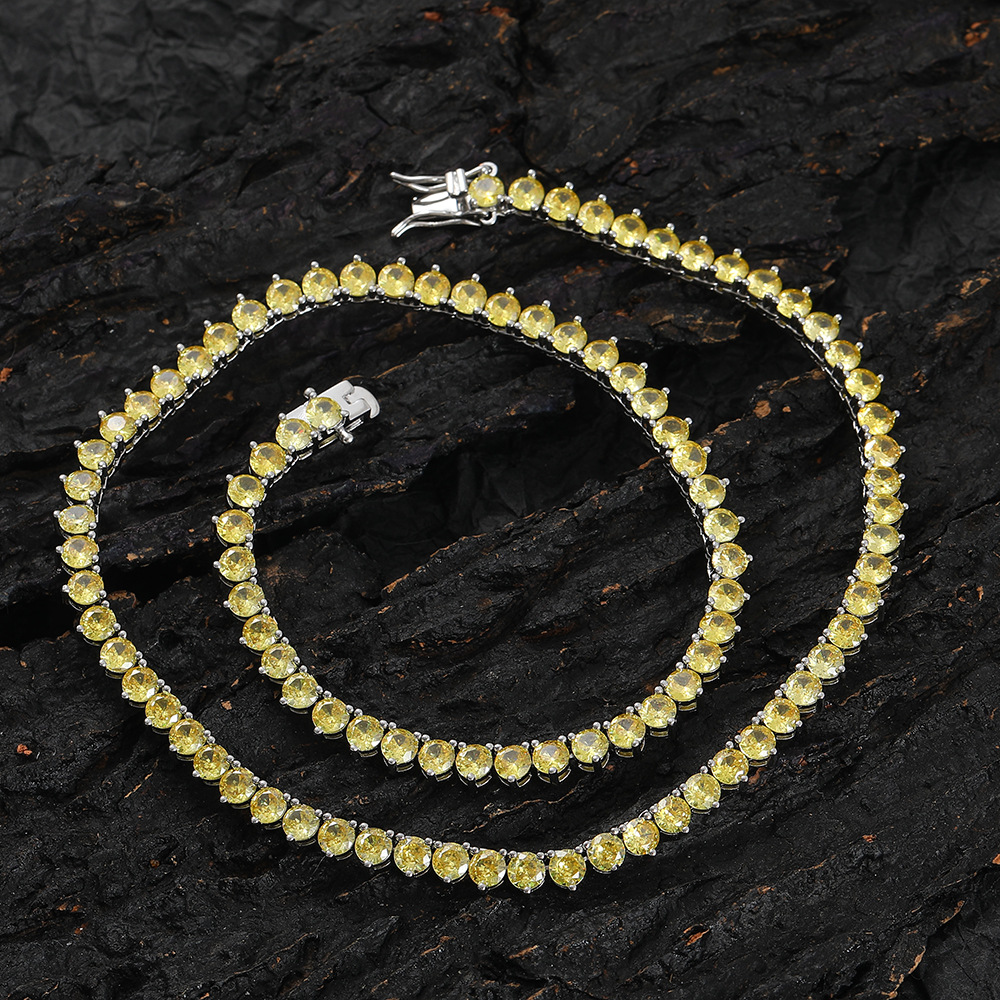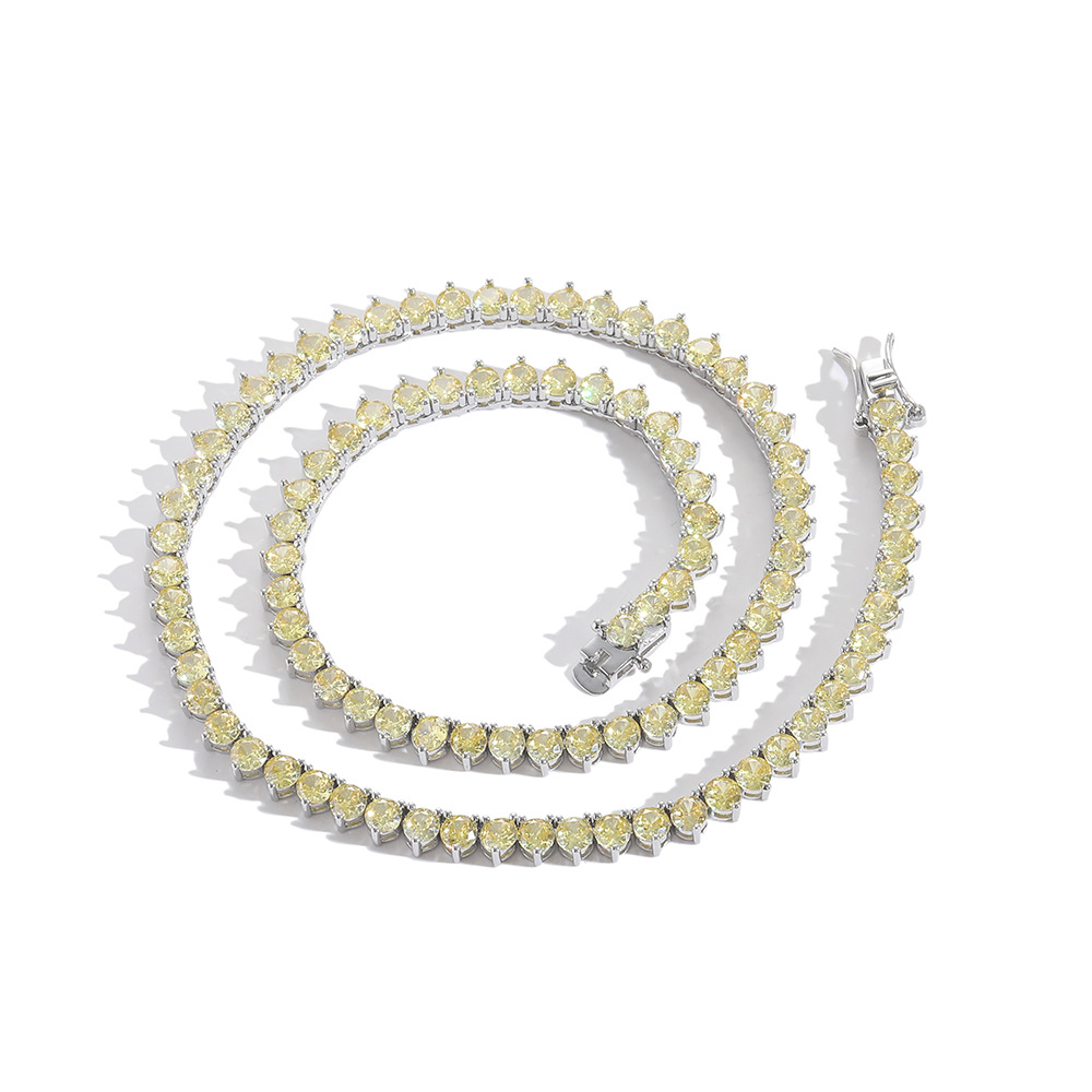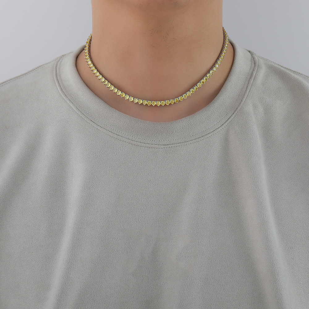 Hip Hop Copper Inlaid Zircon Tennis Chain 4mm 3 Prongs Single Row Necklace
