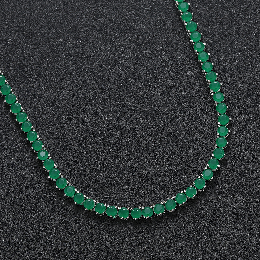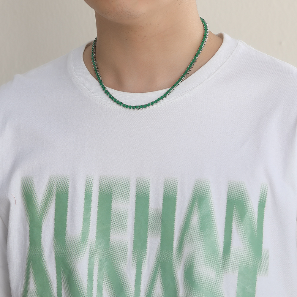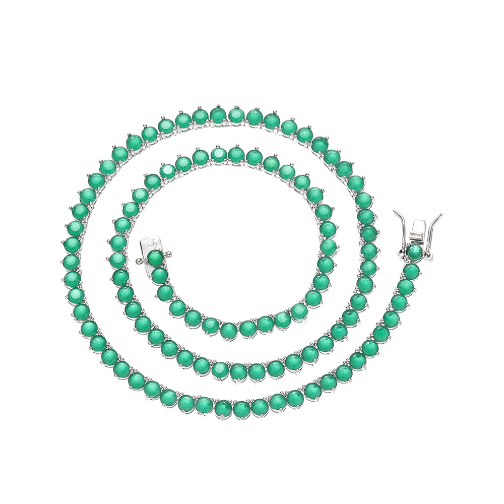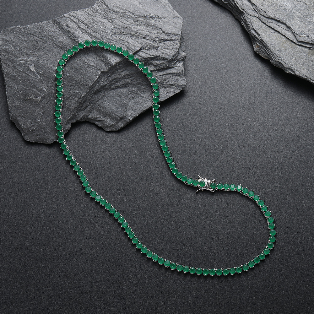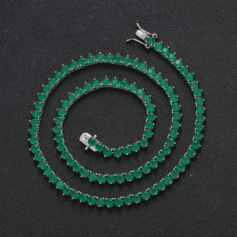 Hip Hop Copper Inlaid Zircon Tennis Chain 4mm Green Single Row Chain Necklace