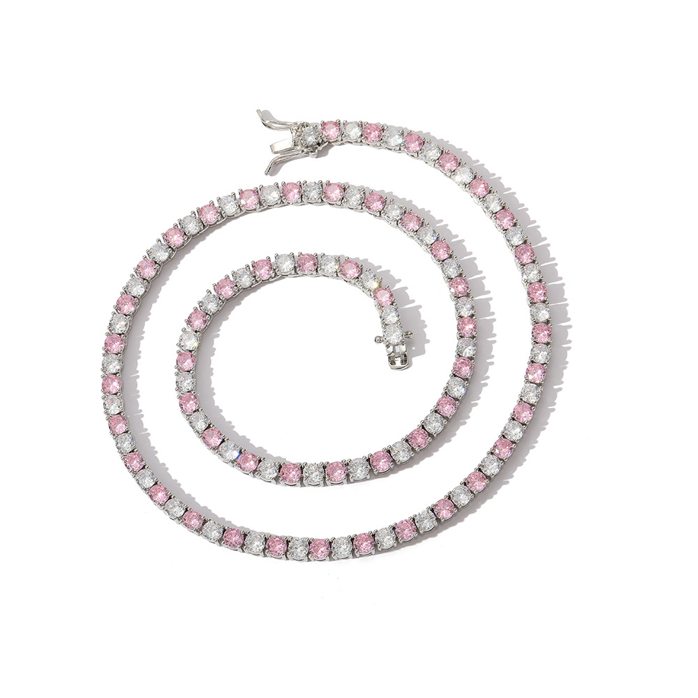 LXXL4001 Zircon Necklace Tennis Chain Single Row Necklace Hip Hop Jewelry