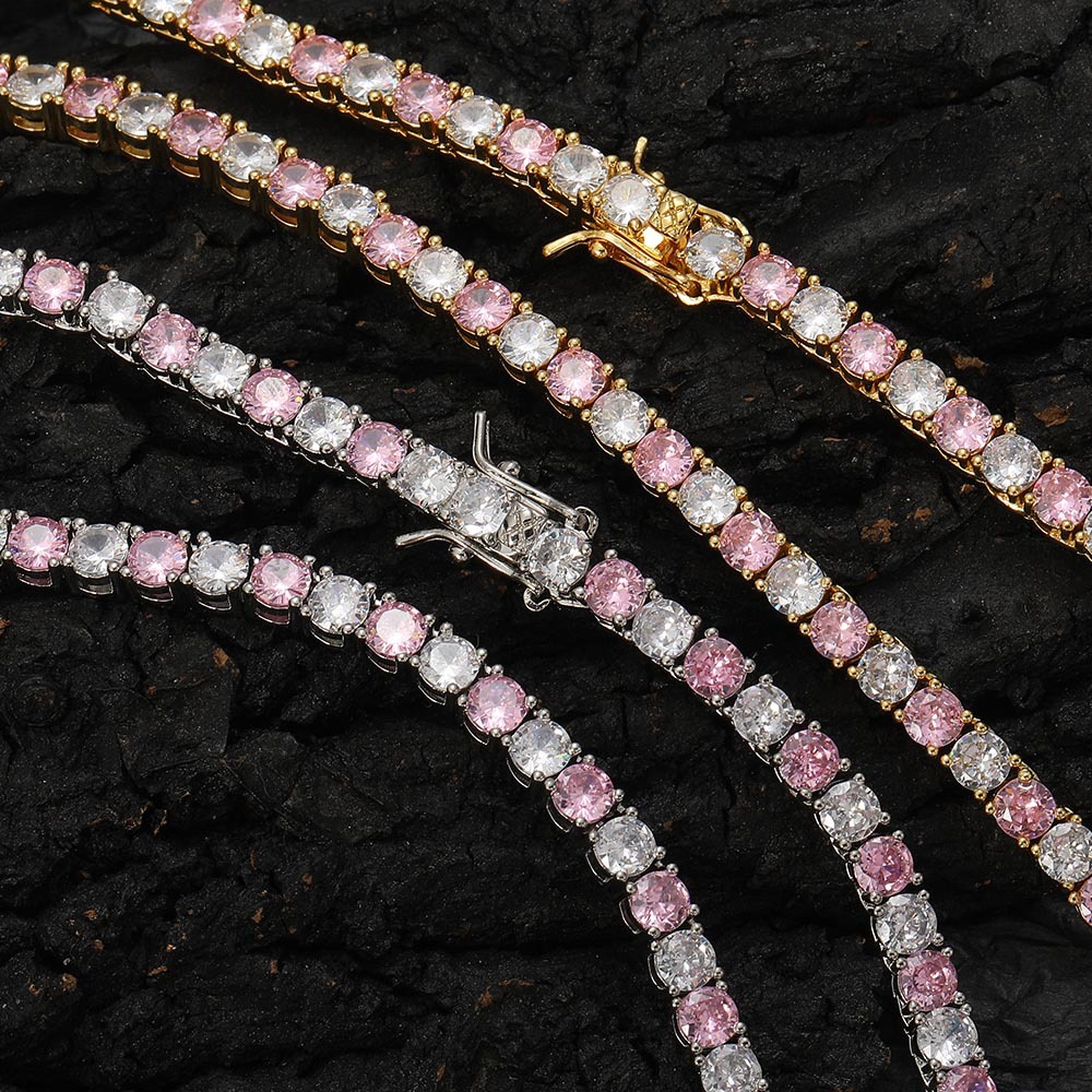 Hip Hop Copper Inlaid Zircon Tennis Chain 4mm Single Row Chain Necklace