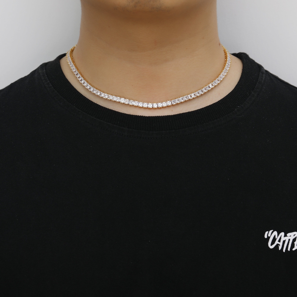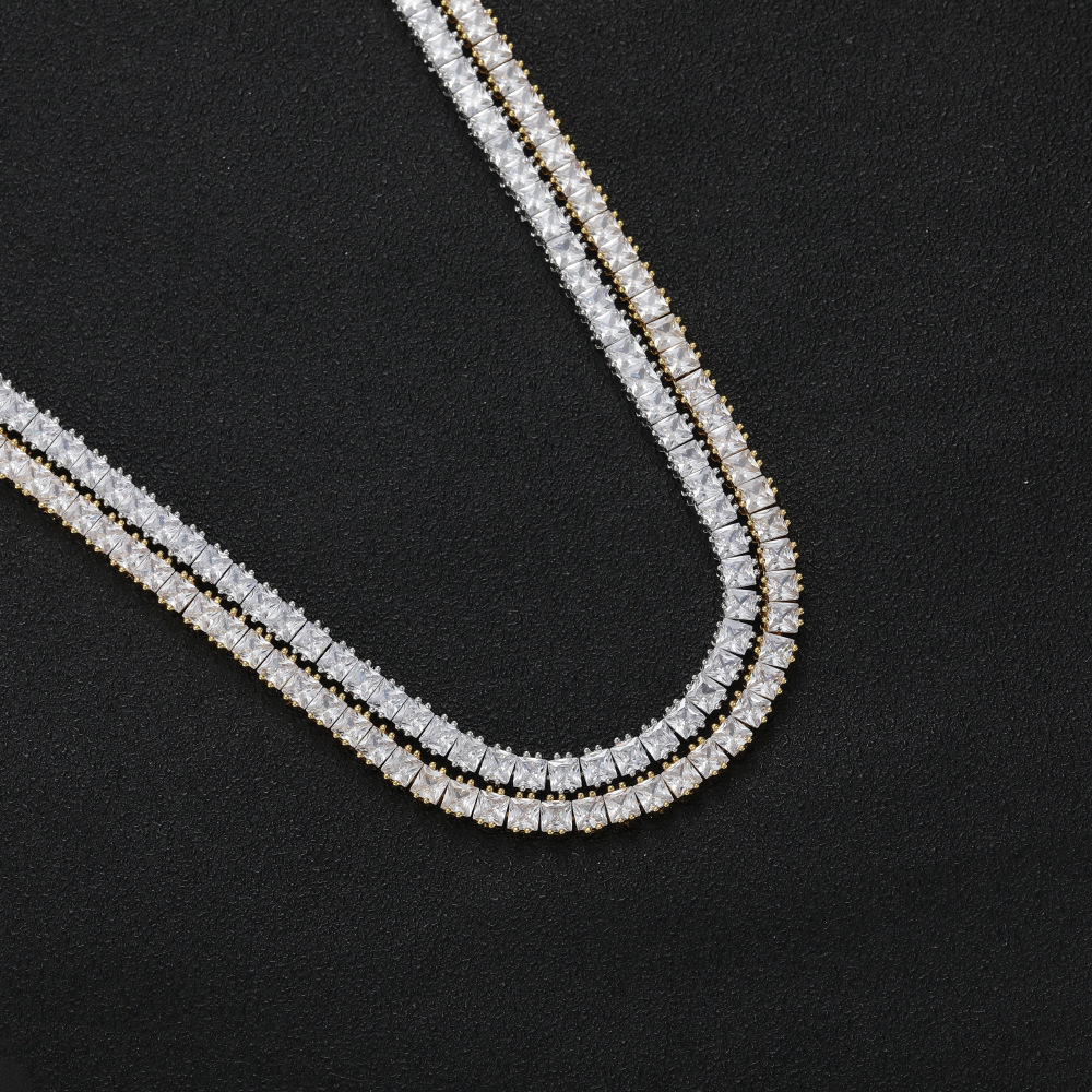Hip Hop Copper Inlaid Zircon Tennis Chain 4mm Square 4 Prongs Single Row Chain Necklace Bracelet
